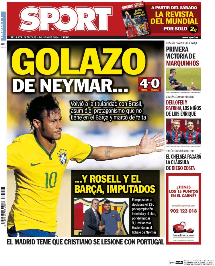 "Golazo de Neymar... y Rosell y el Barça, imputados"