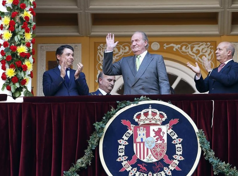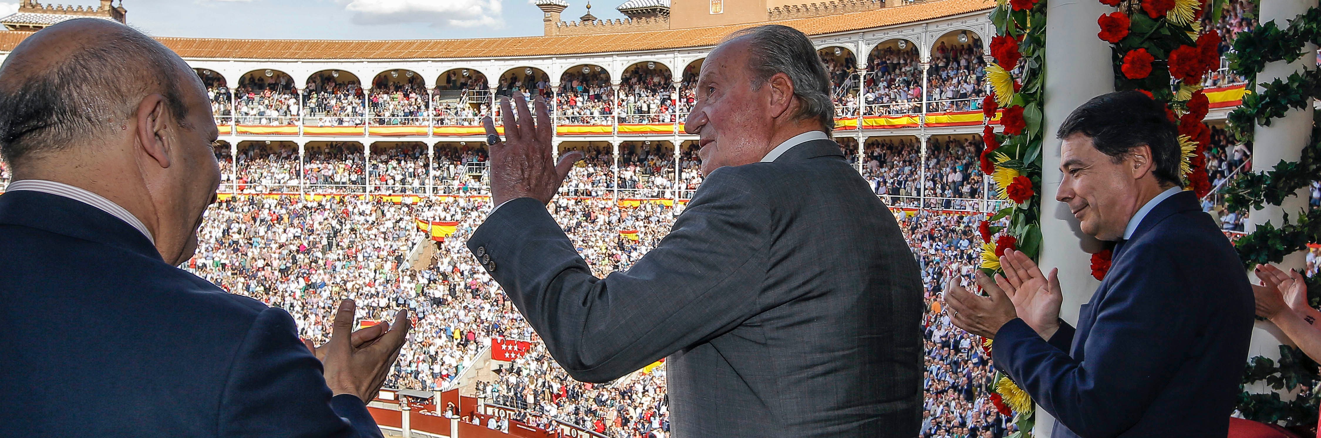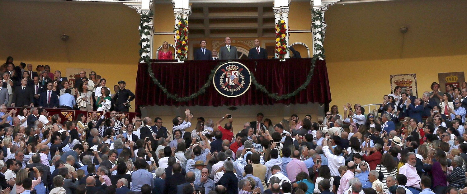 El Rey ha presidido este miércoles, en la plaza de Toros de Las Ventas, la corrida de toros de la Beneficencia, en la que han toreado El Juli, Fandiño y Talavante. A su llegada, dos días después del anuncio de su abdicación, ha sido recibido con una gran ovación y todo el público se ha puesto en pie. Durante más de un minuto, la gente que asistía al evento ha aplaudido al monarca mientras sonaba el himno nacional.