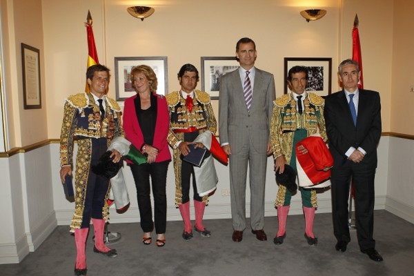 Los tres espadas brindaron sus respectivos primeros toros a Su Alteza Real el Príncipe de Asturias, que al finalizar la corrida saludó a los toreros.