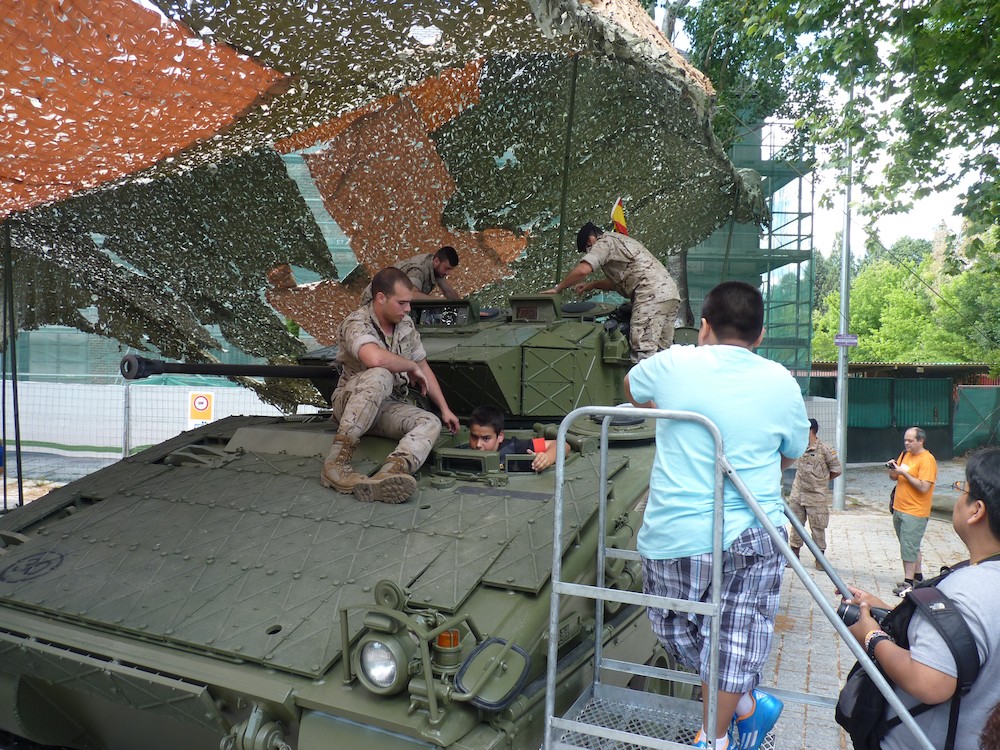 El vehículo de combate Pizarro, con su cañón Mauser de 30 milímetros, es uno de los vehículos que más éxito tienen cuando se exponen al público.