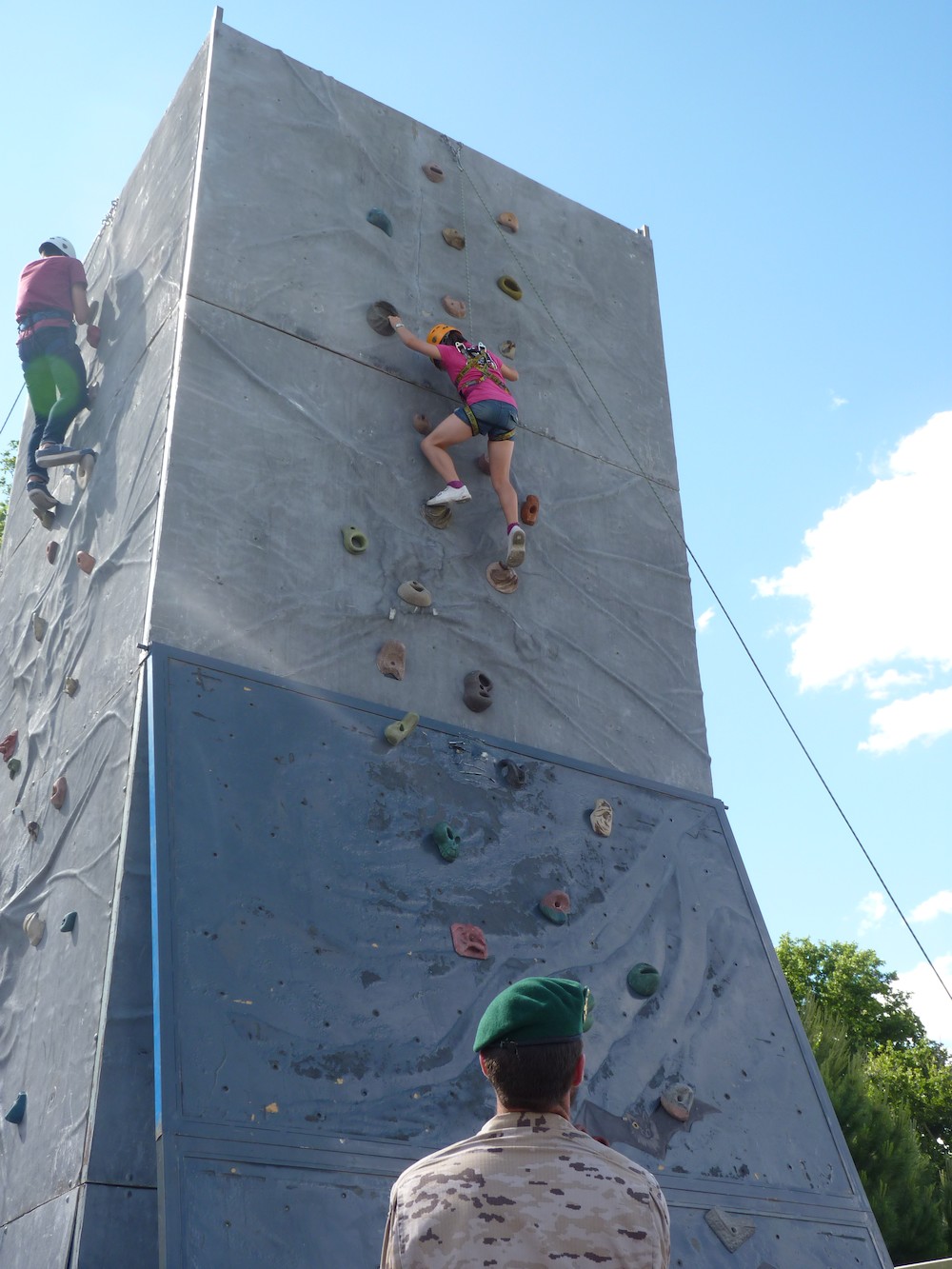 El rocódromo de Cazadores de Montaña está siendo una de las actividades para los niños con más público.