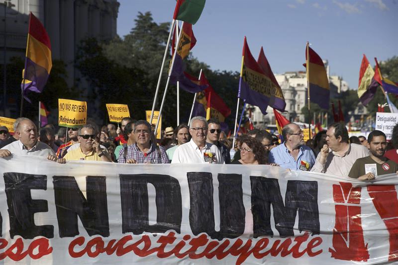 IU, EQUO y el Movimiento 15M secundan la convocatoria. Poca asistencia, numerosa simbología comunista e insultos a los reyes.