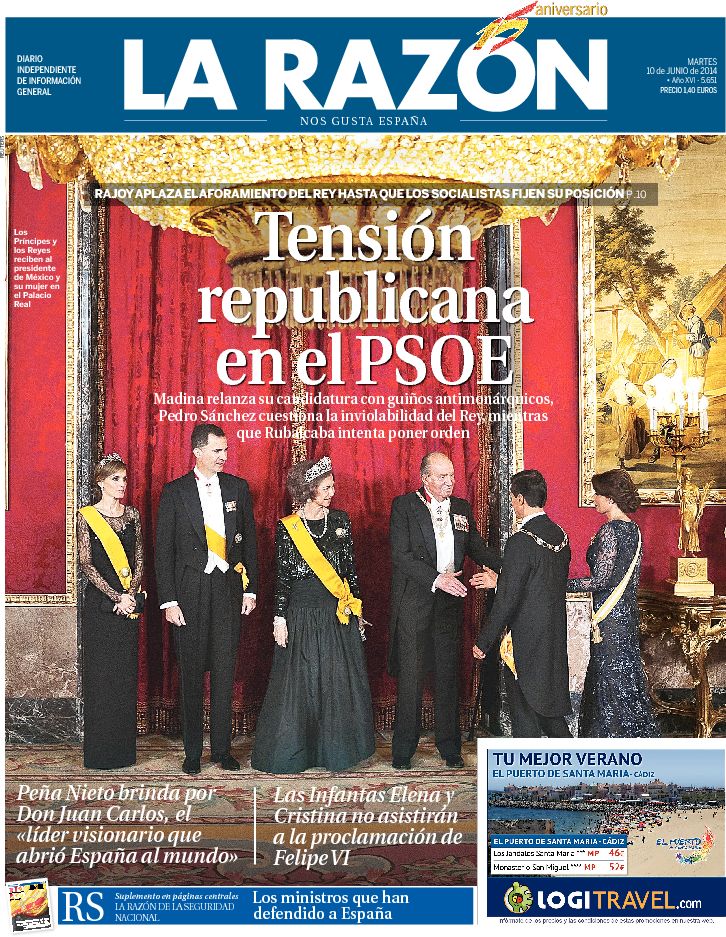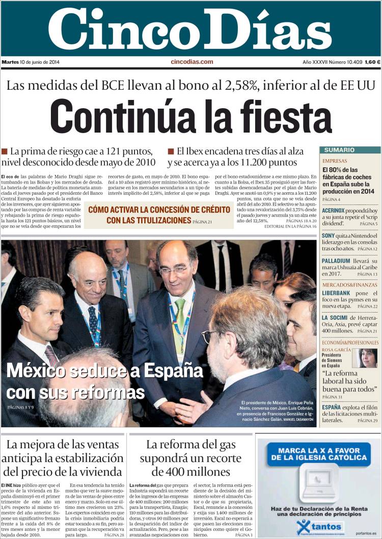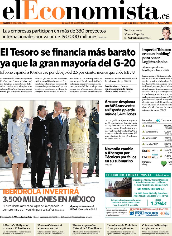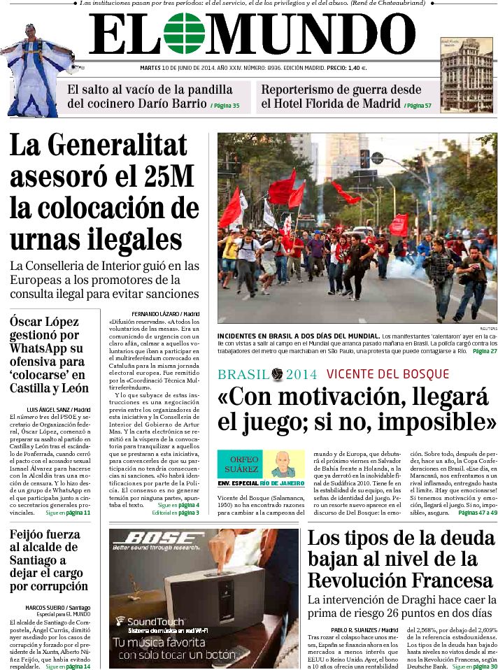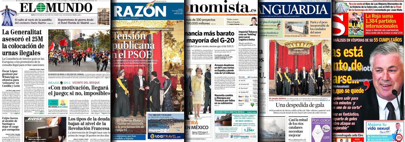Portadas de los diarios El Mundo, El País, ABC, La Razón, La Vanguardia, El Periódico, Cinco Días, El Economista, Expansión, Marca, As, Mundo Deportivo y Sport.