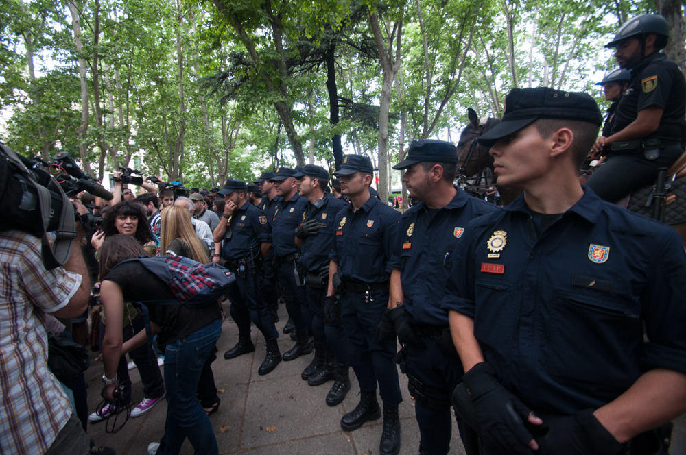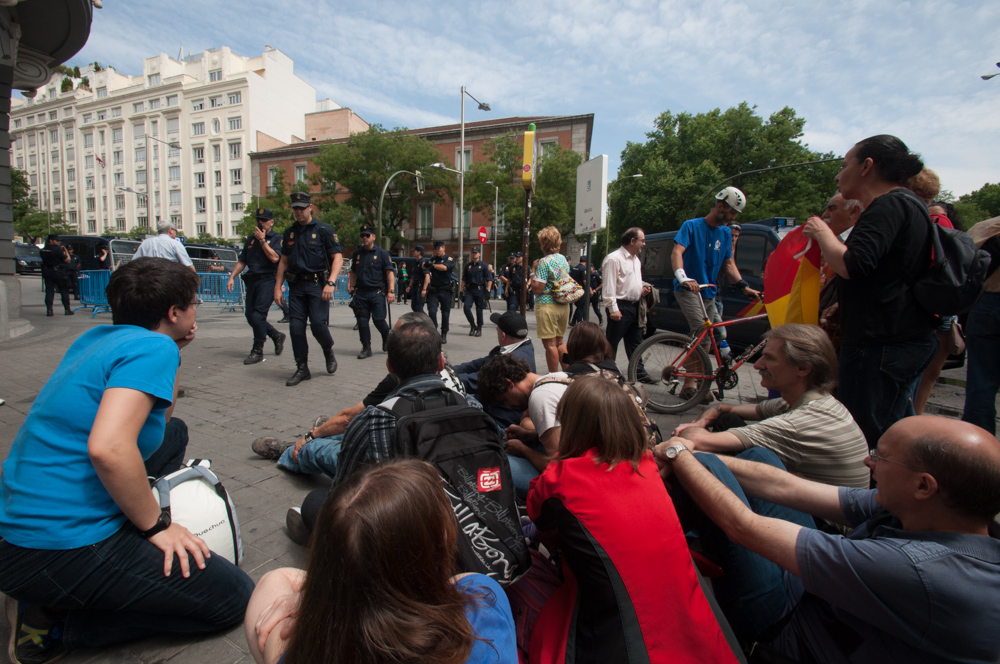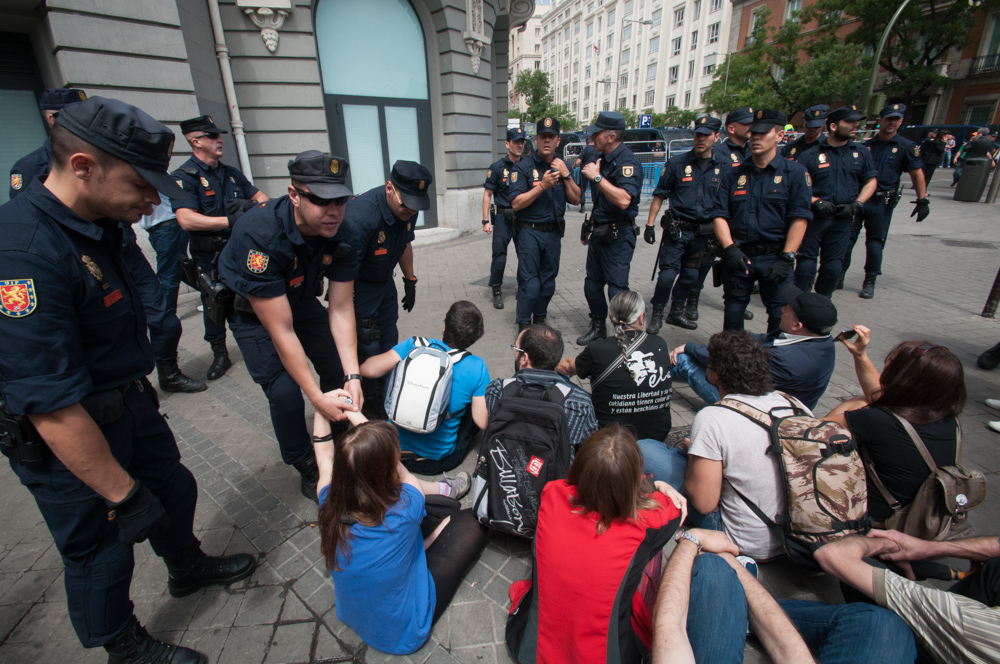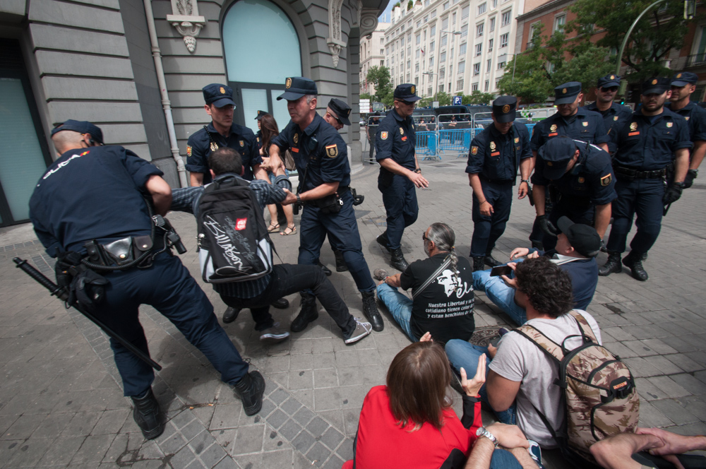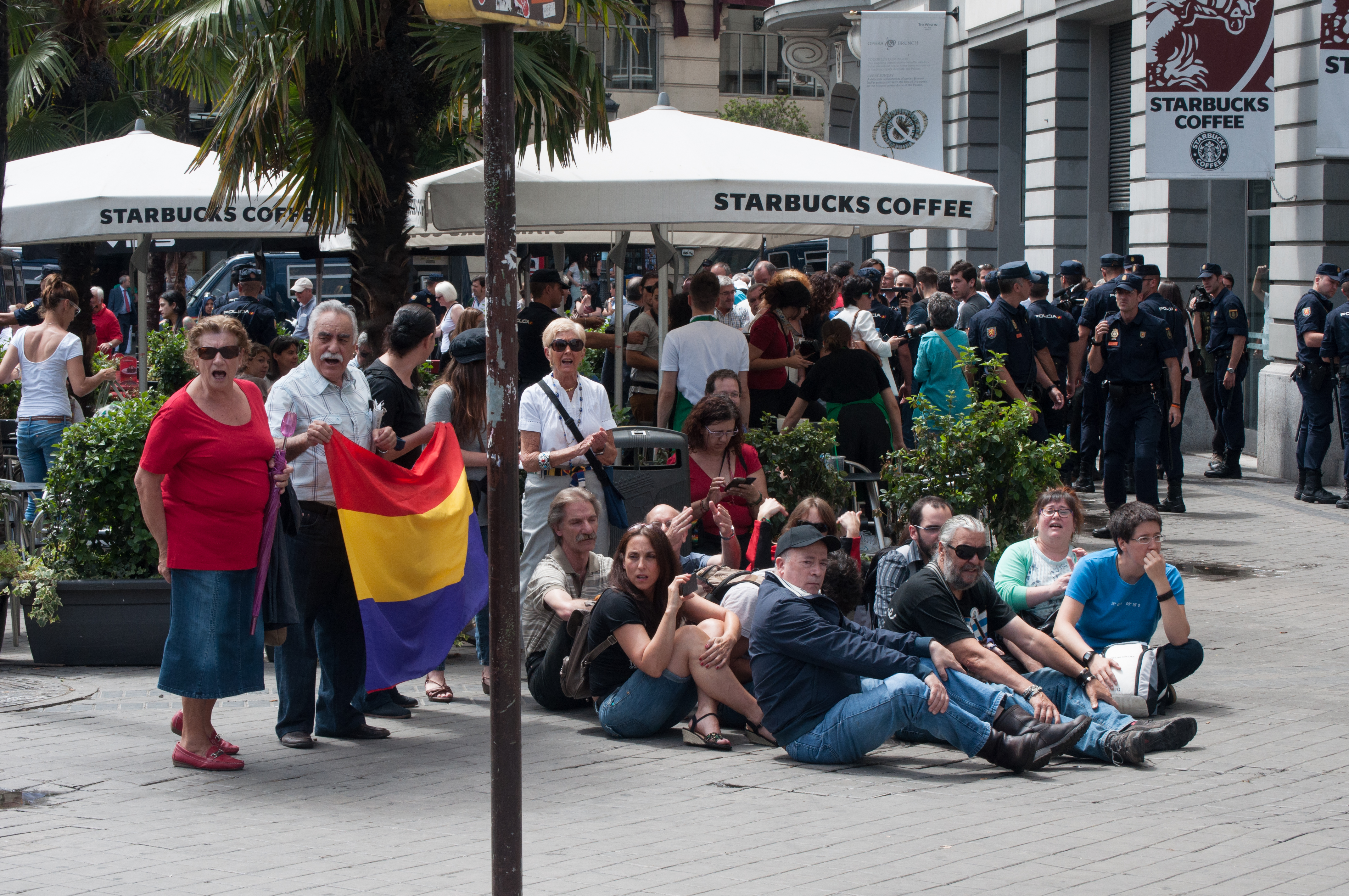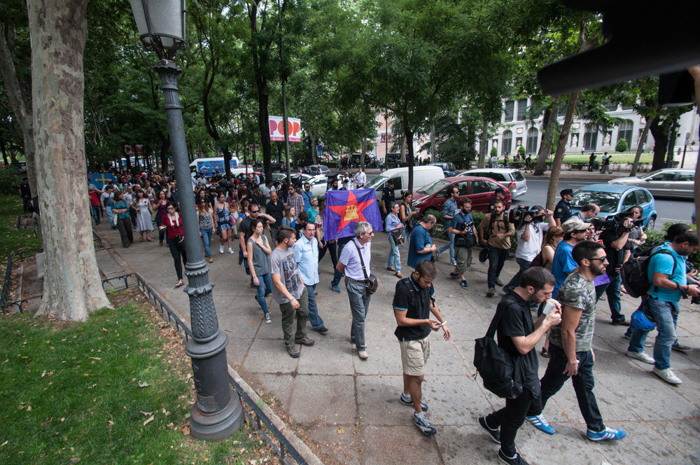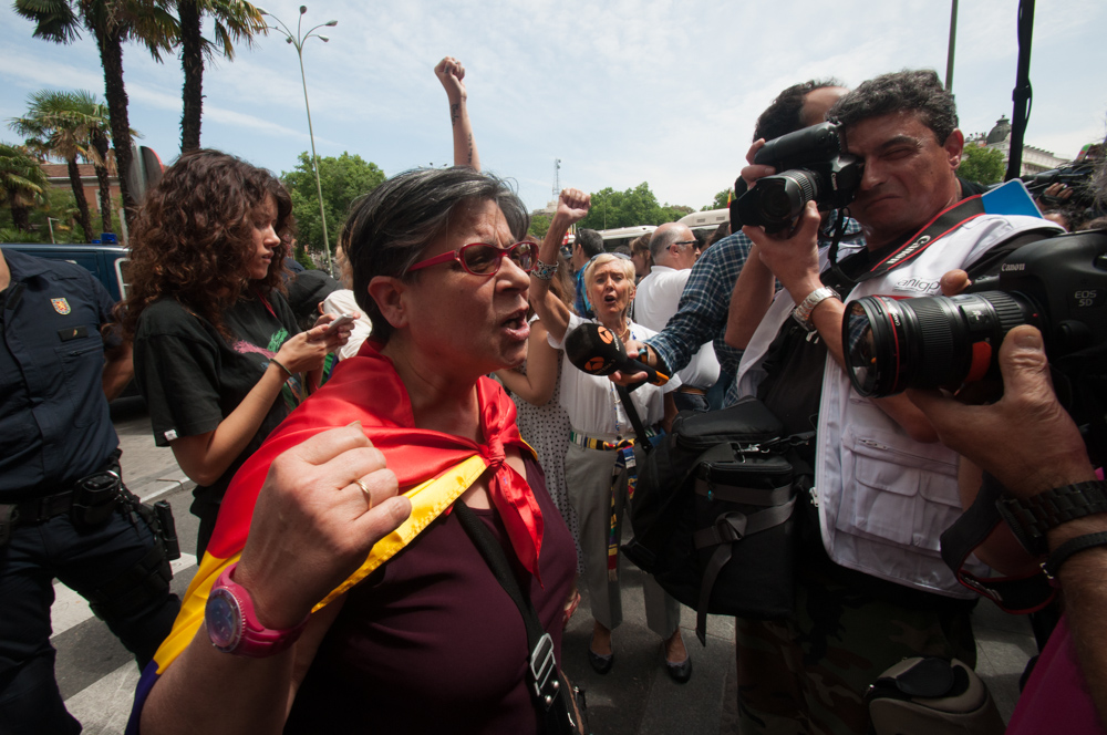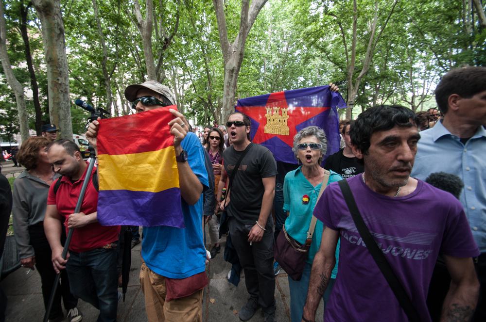 Este miércoles la plataforma 25-S ha convocado una concentración republicana en las cercanías del Congreso de los Diputados para reivindicar la República, en el día en que se ha procedido a la votación de votación de la ley orgánica que permitirá la abdicación del rey Juan Carlos I y la sucesión en la Corona en la figura de su hijo, el futuro Felipe VI.