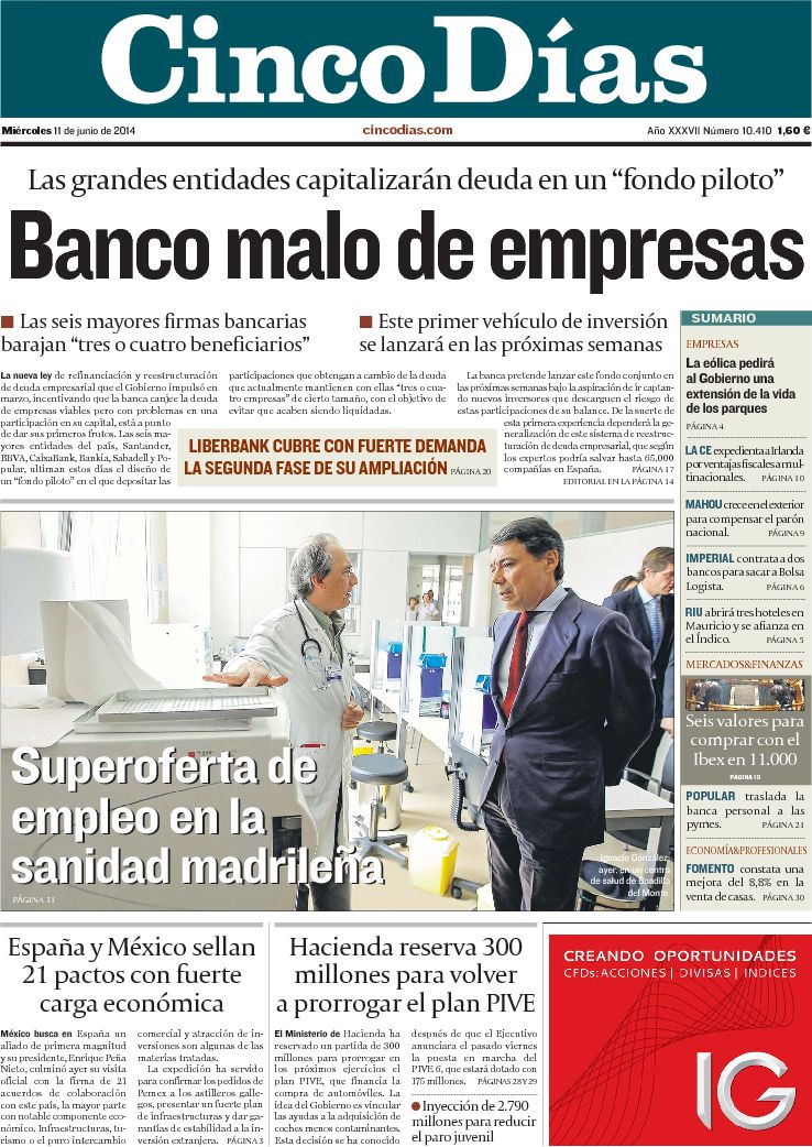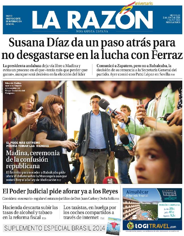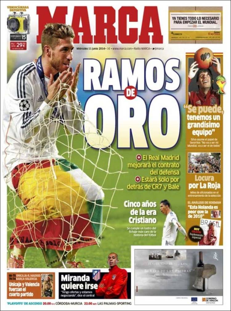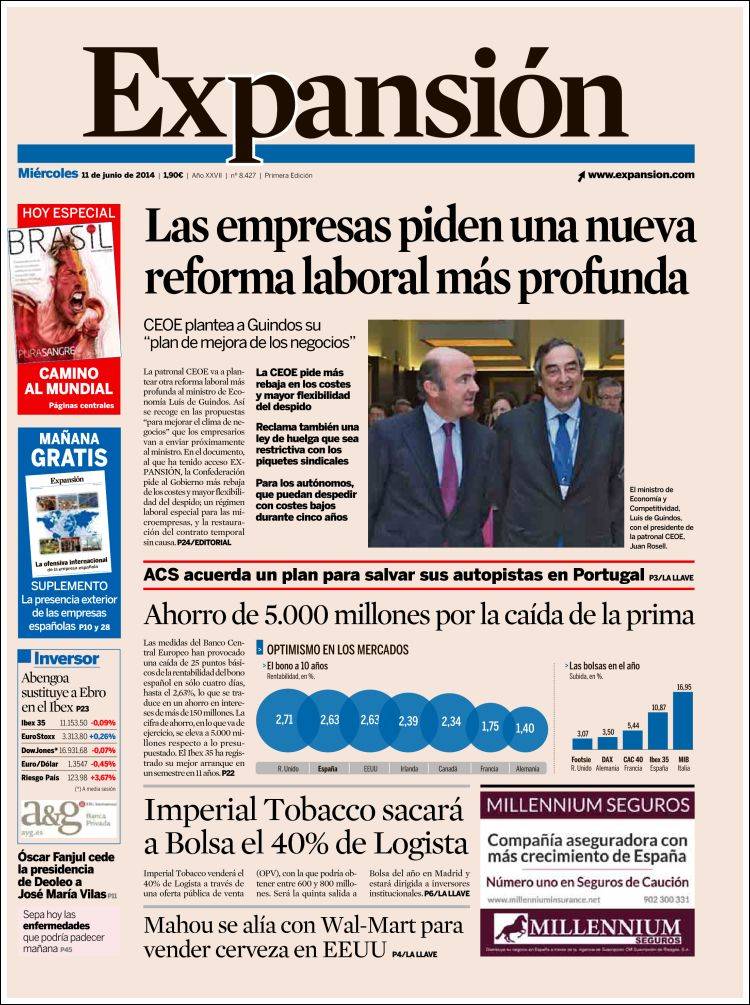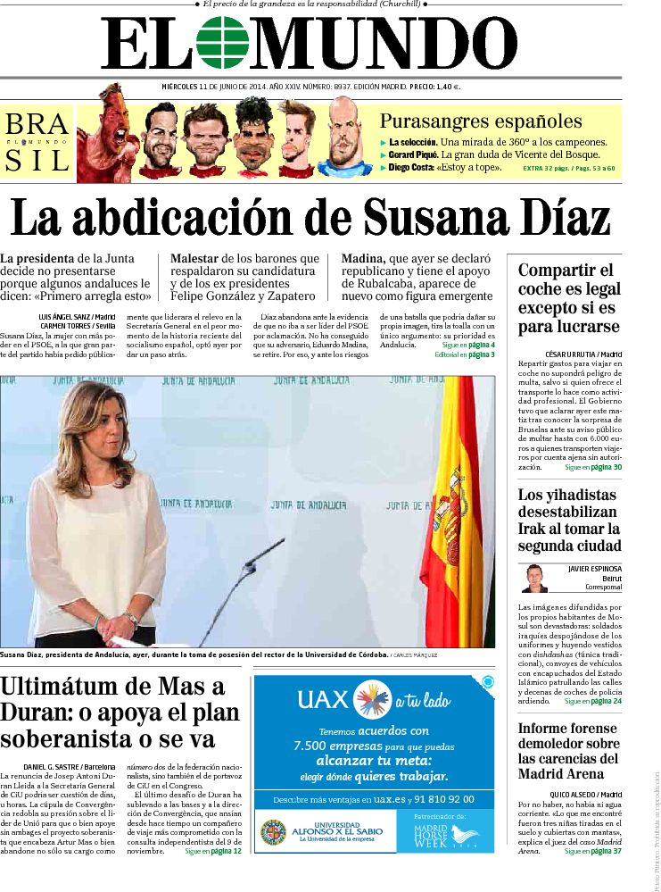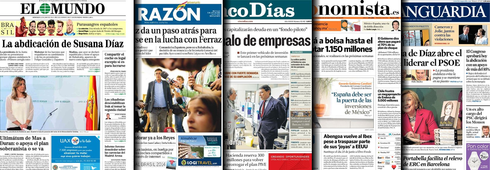 Portadas de los diarios El Mundo, El País, ABC, La Razón, La Vanguardia, El Periódico, Cinco Días, El Economista, Expansión, Marca, As, Mundo Deportivo y Sport.