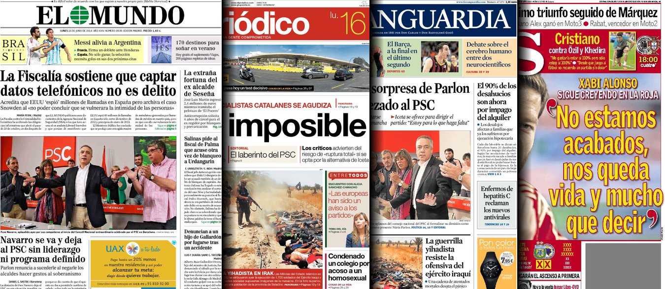 Portadas de los diarios ABC, As, El Periódico y La Vanguardia.