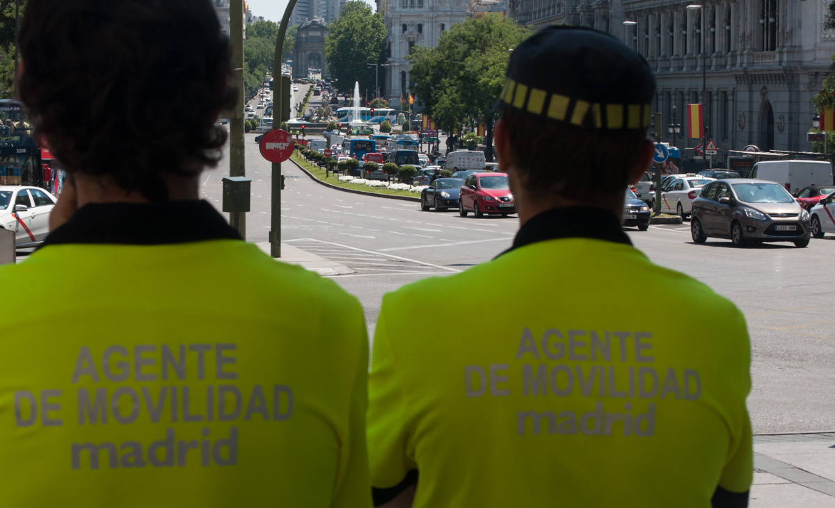 Dos agentes de movilidad vigilan el tráfico. Serán centenares los efectivos, de varios cuerpos de seguridad del Estado, que velarán en este día tan señalado.