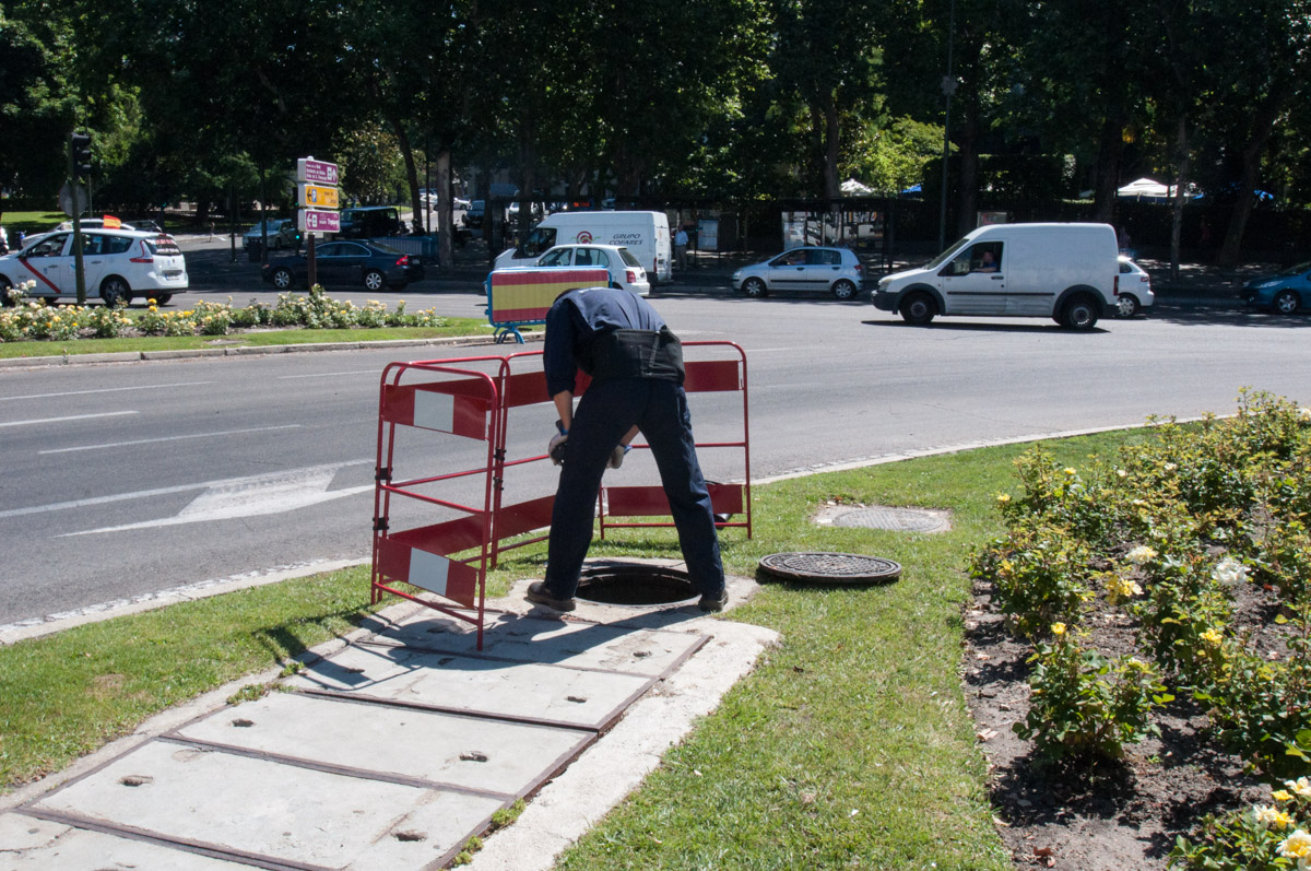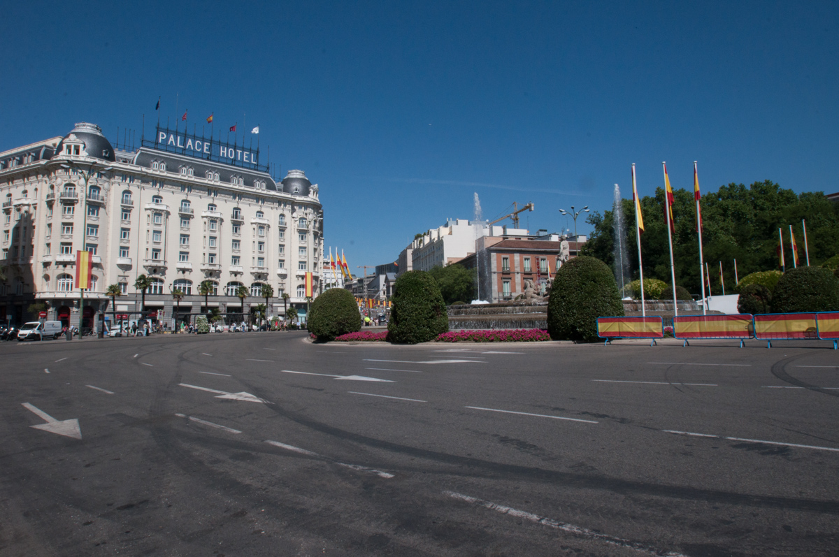La zona central de la plaza de Neptuno ya cortada desde primera hora de la mañana.