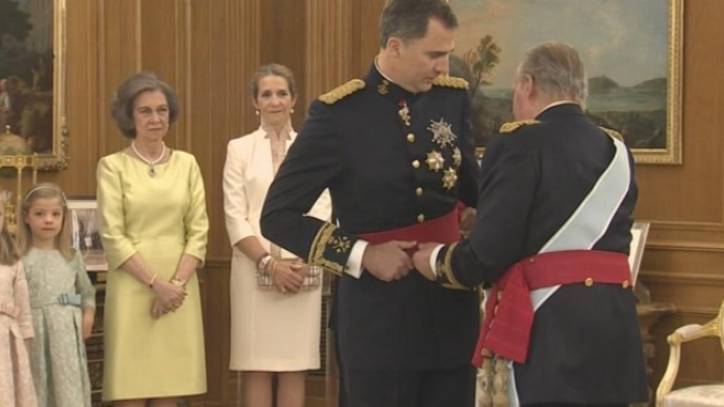 El Rey Don Juan Carlos ha impuesto el fajín rojo de capitán general de los Ejércitos a su hijo el Rey Don Felipe VI.