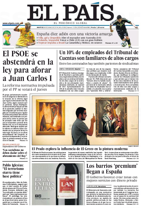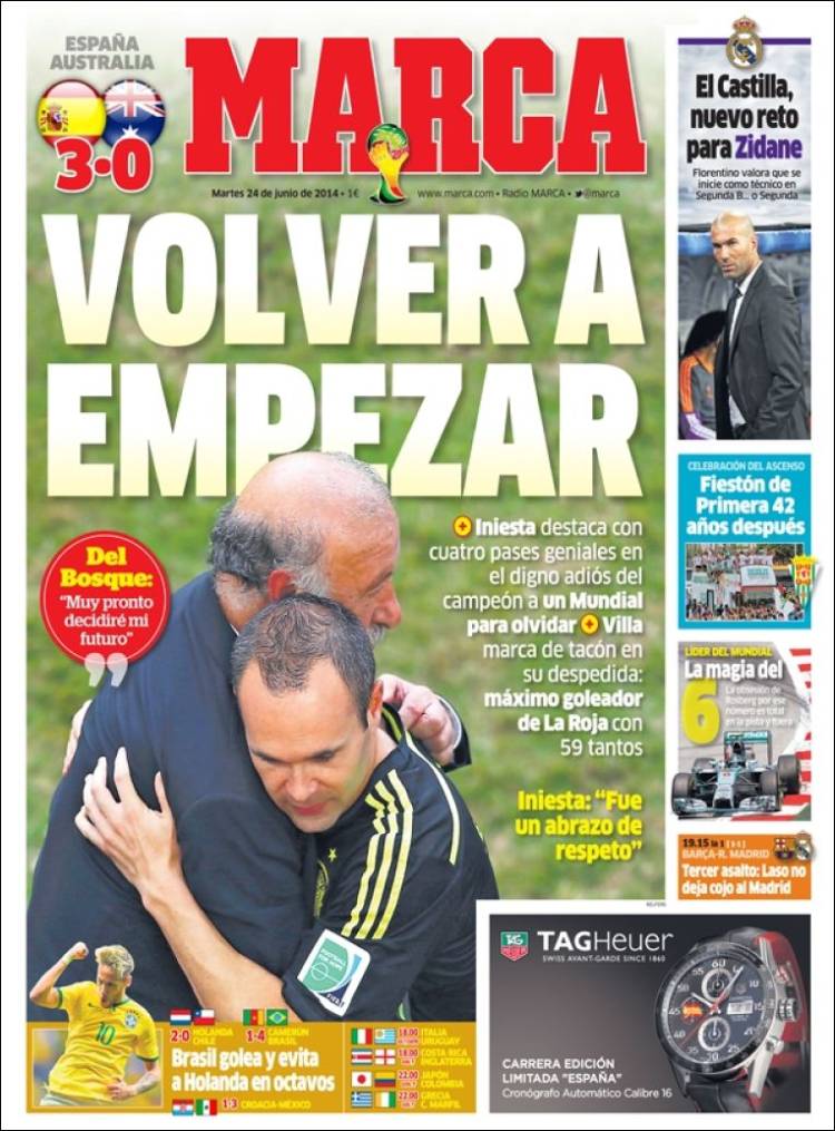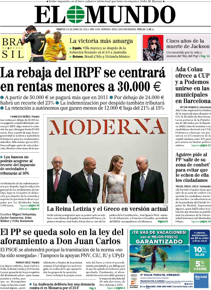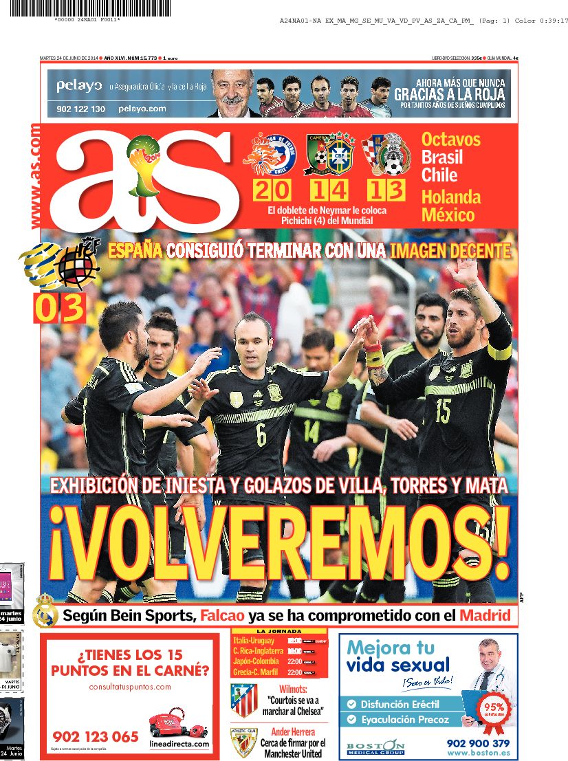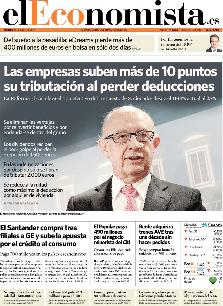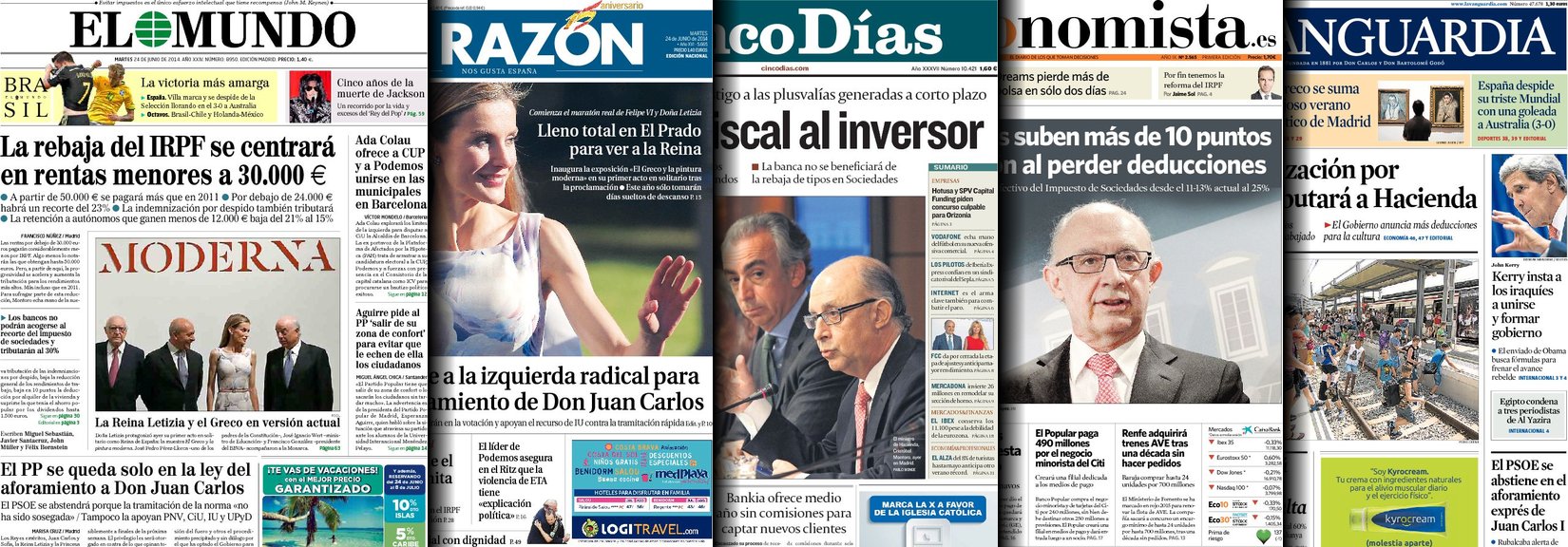 Portadas de los diarios El Mundo, El País, ABC, La Razón, La Vanguardia, El Periódico, Cinco Días, El Economista, Marca, As, Mundo Deportivo y Sport.