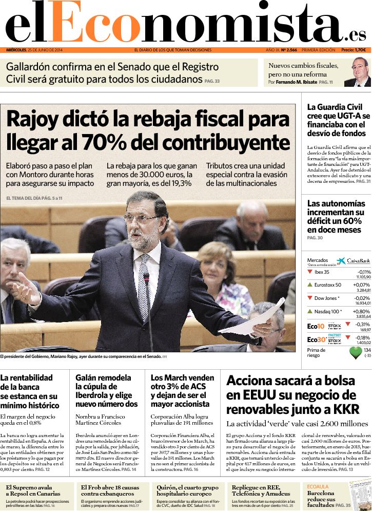 "Rajoy dictó la rebaja fiscal para llegar al 70% del contribuyente"