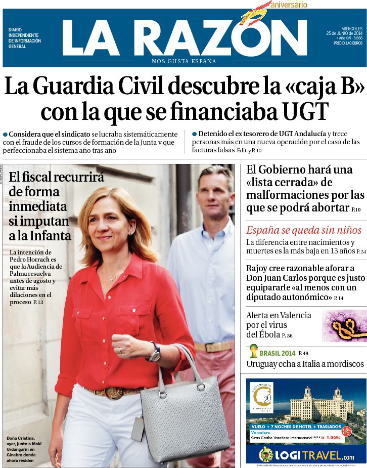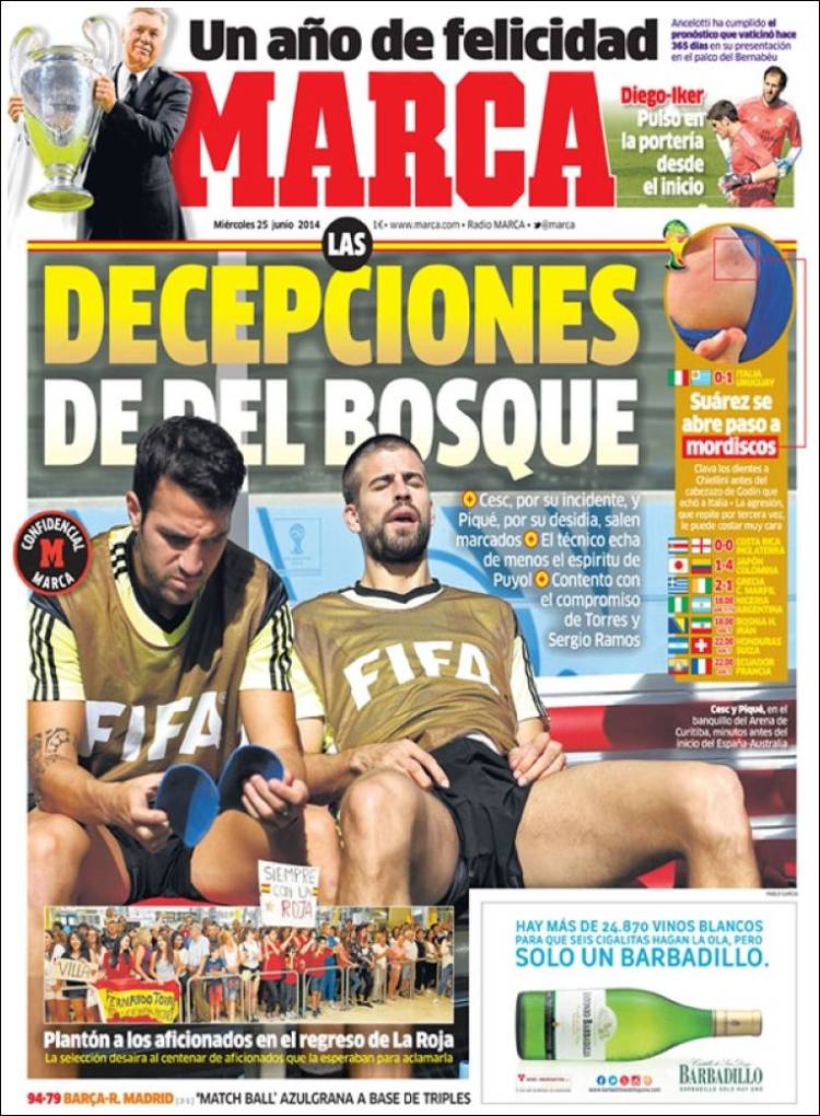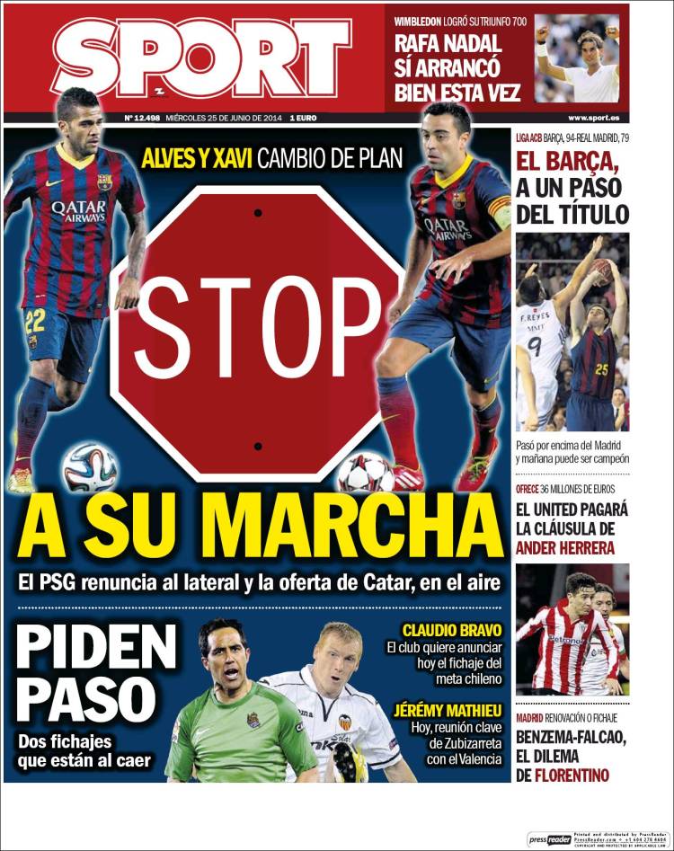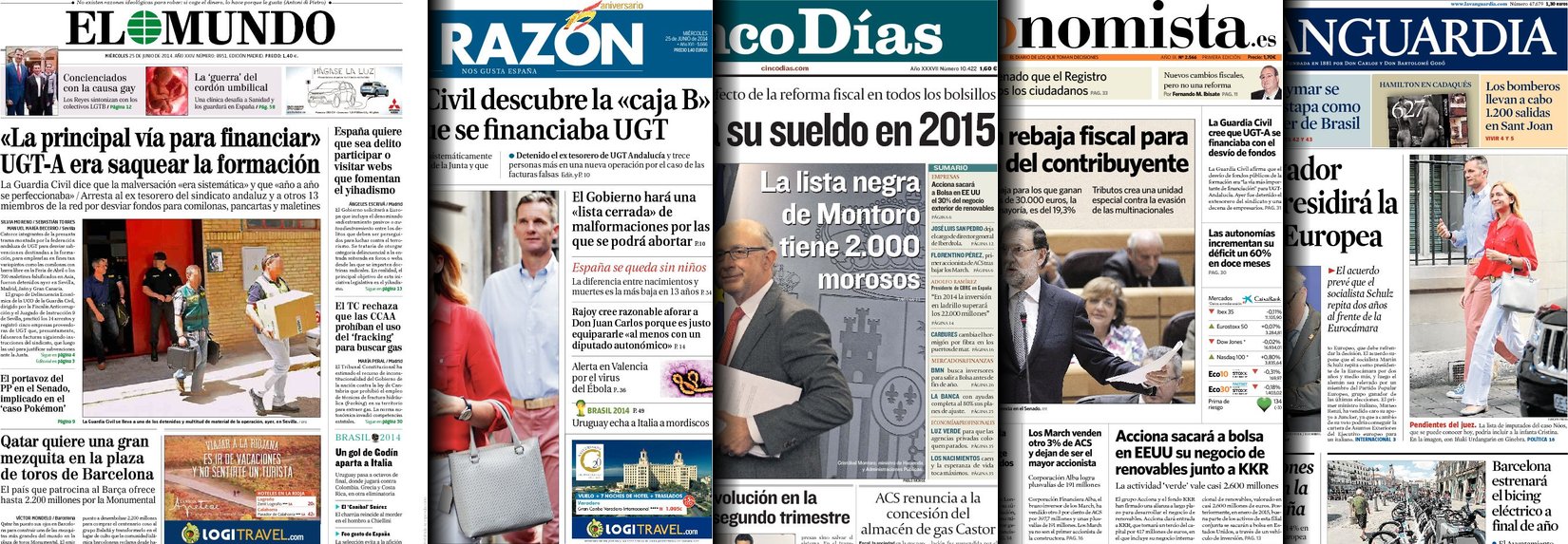 Portadas de los diarios El Mundo, El País, ABC, La Razón, La Vanguardia, El Periódico, Cinco Días, El Economista, Expansión, Marca, As, Mundo Deportivo y Sport.