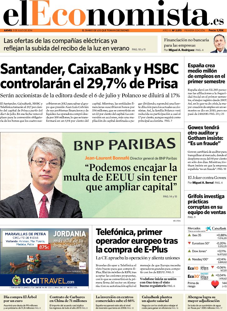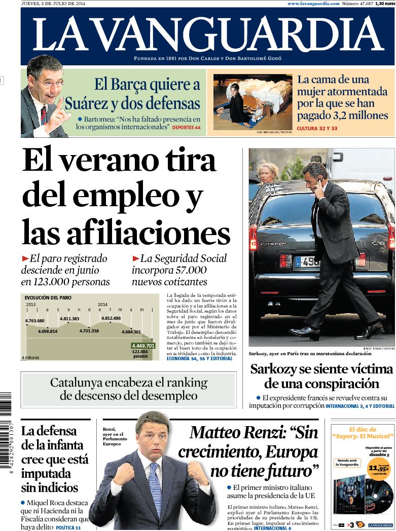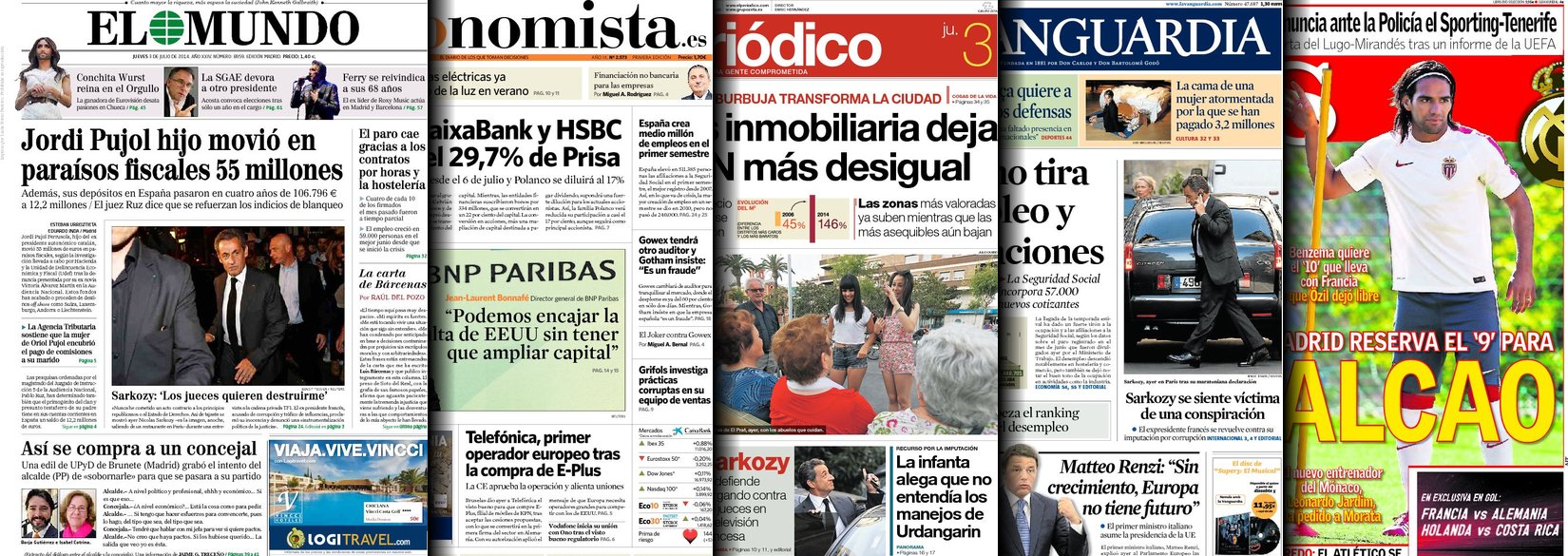 Portadas de los diarios ABC, As, El Periódico, El Economista y La Vanguardia.
