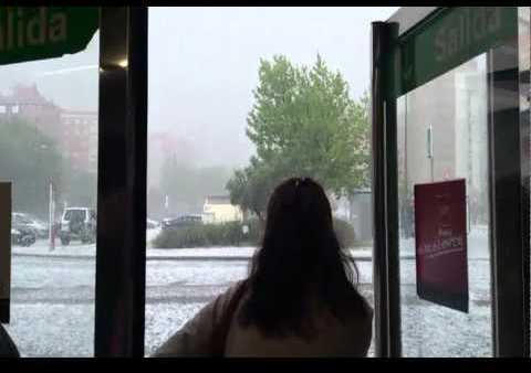 Una fuerte granizada cubre Madrid de blanco