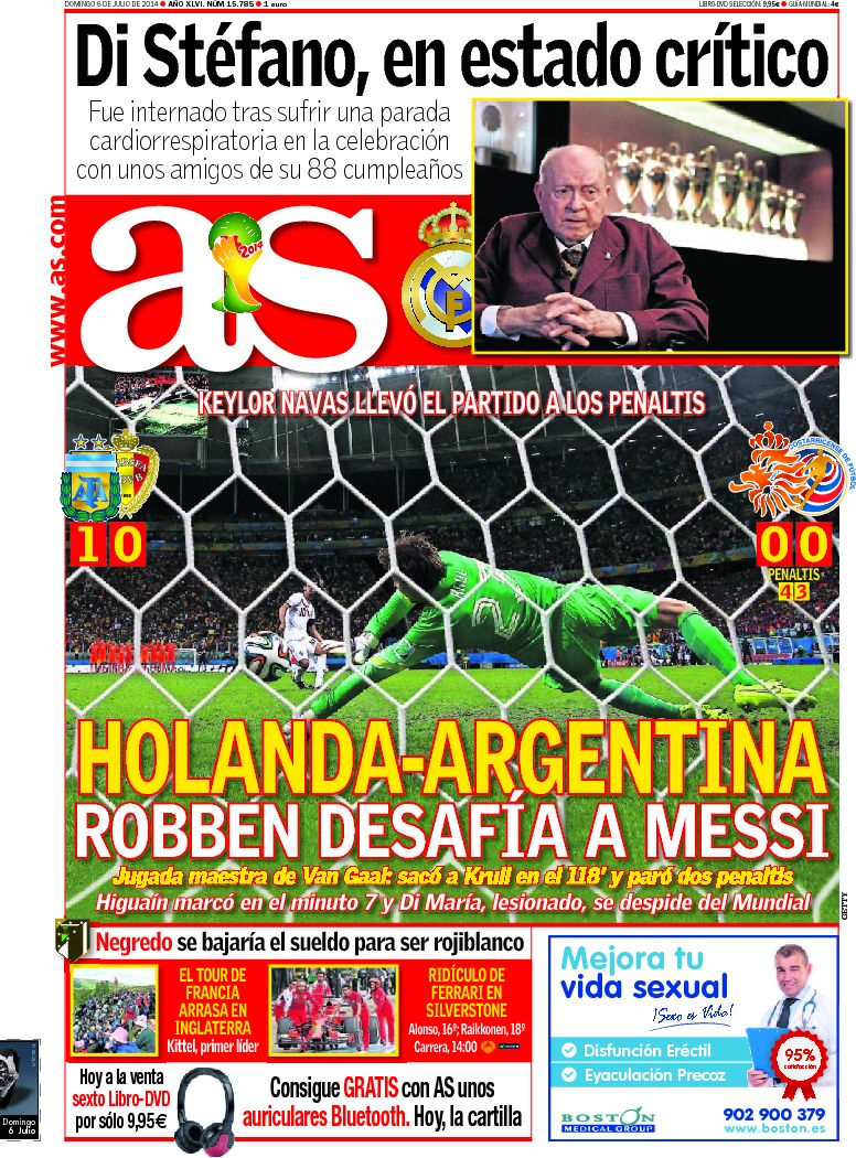 Portadas de los diarios ABC, La Razón, As y La Vanguardia.