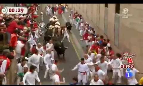 El tercer encierro de sanfermines 2014 con toros de Victoriano del Río ha sido accidentado y peligroso y ha dejado dos heridos por asta de toro.