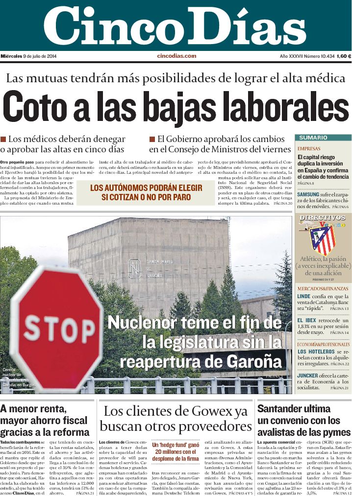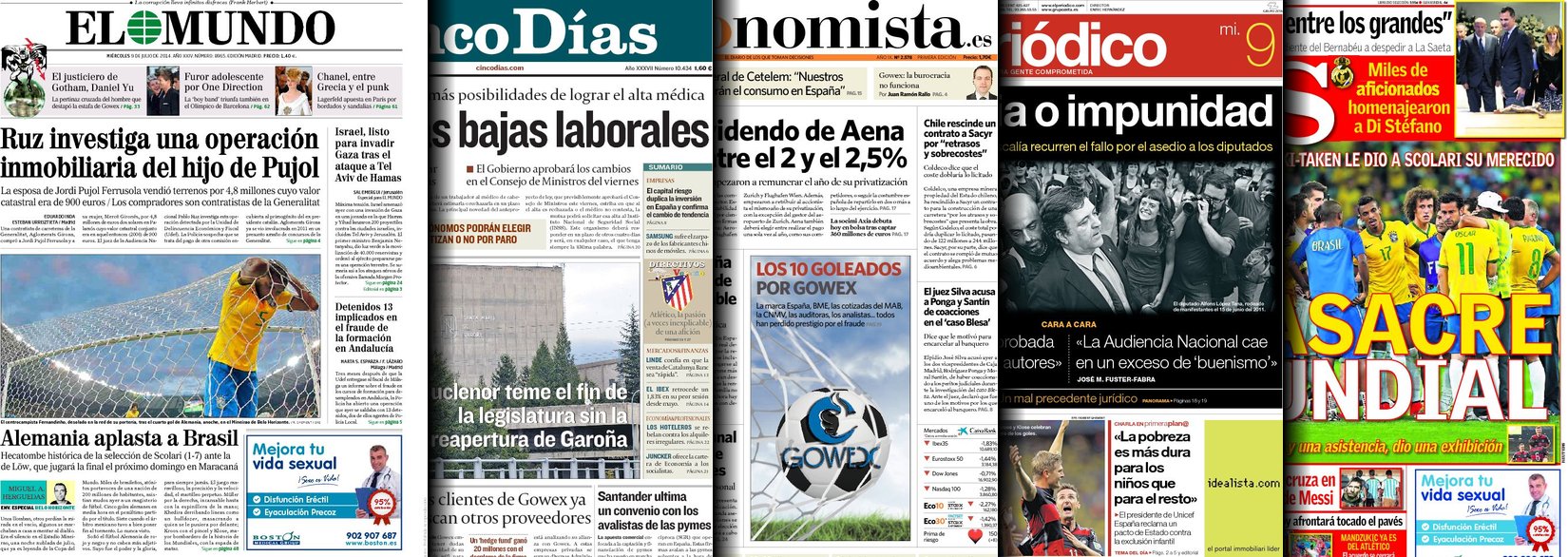 Portadas de los diarios El Mundo, El País, ABC, La Razón, La Vanguardia, El Periódico, Cinco Días, El Economista, Expansión, Marca, As, Mundo Deportivo y Sport.
