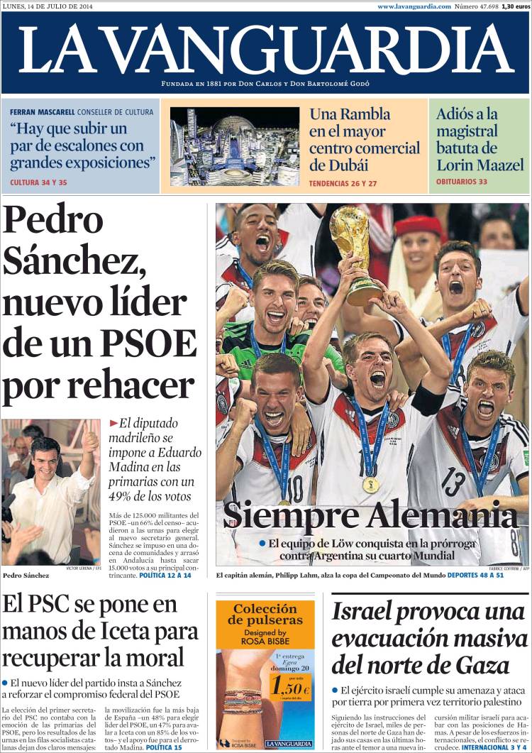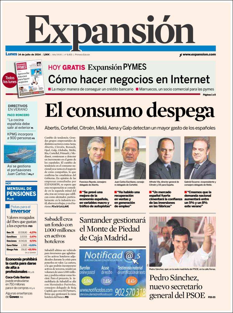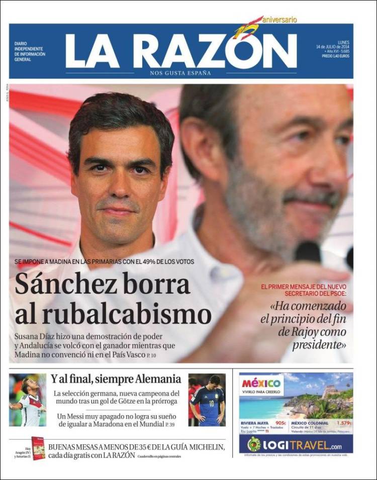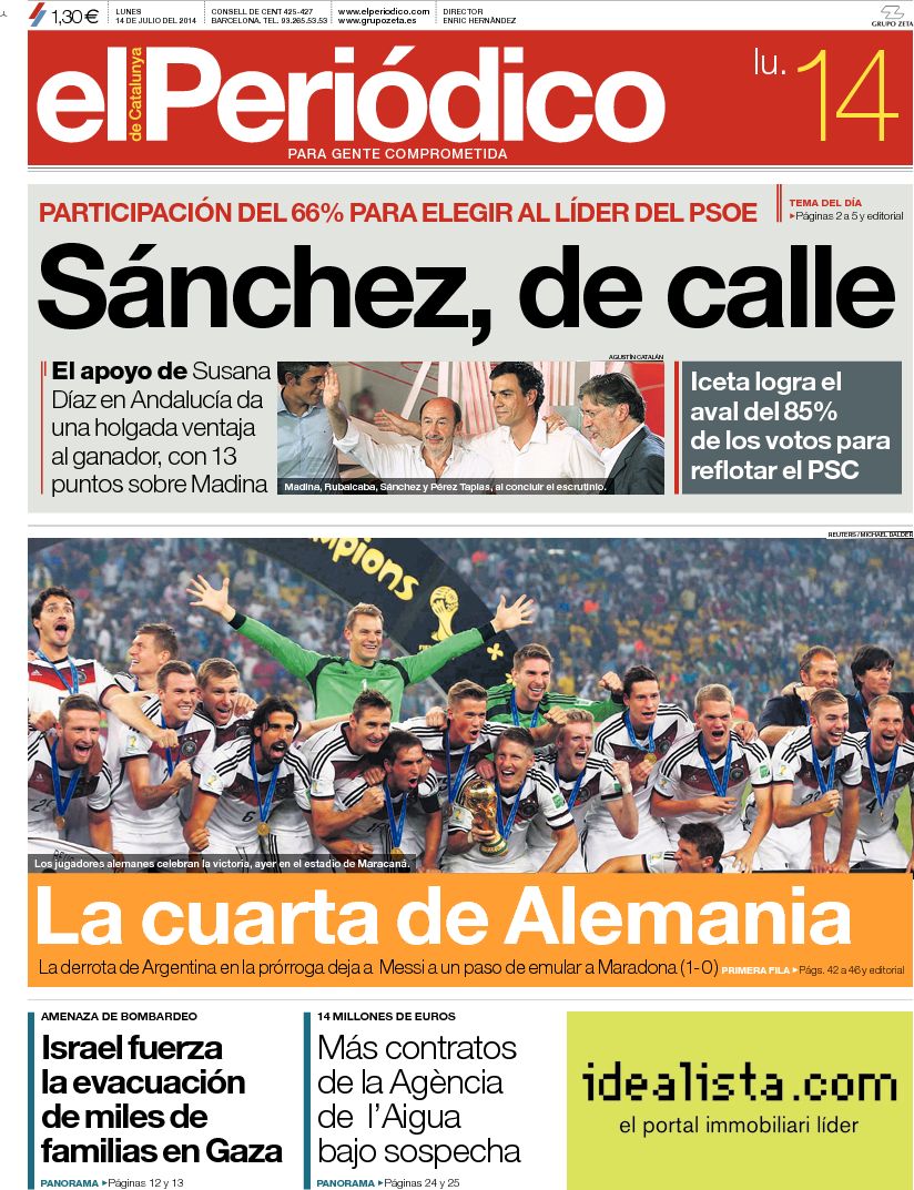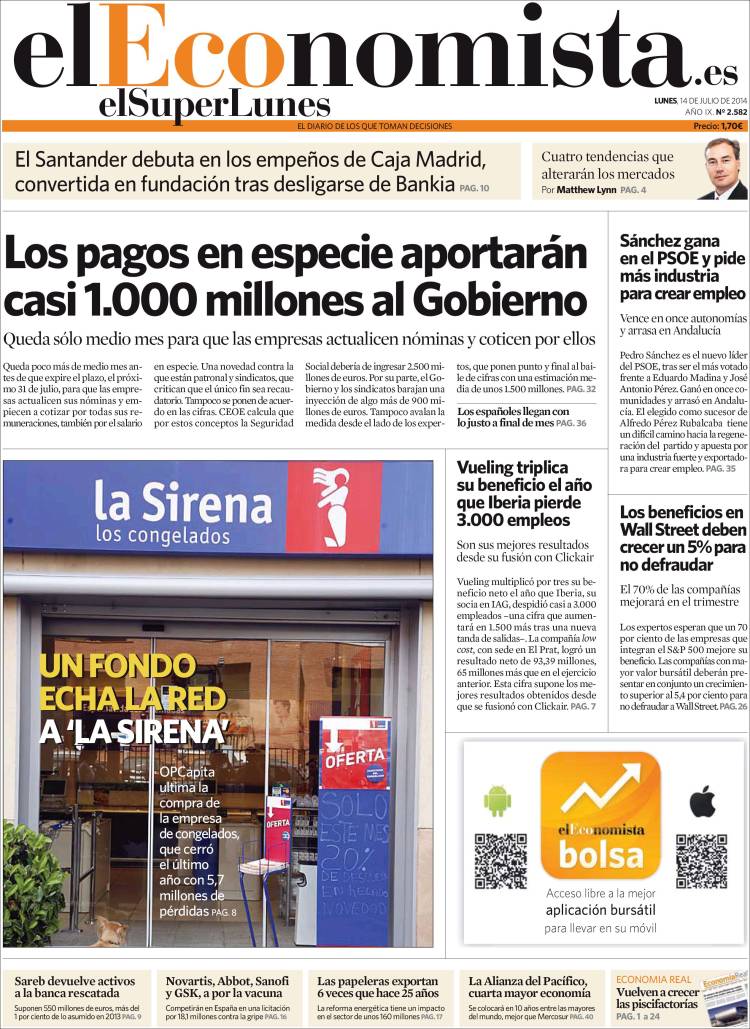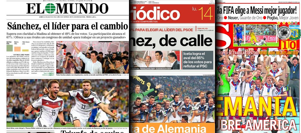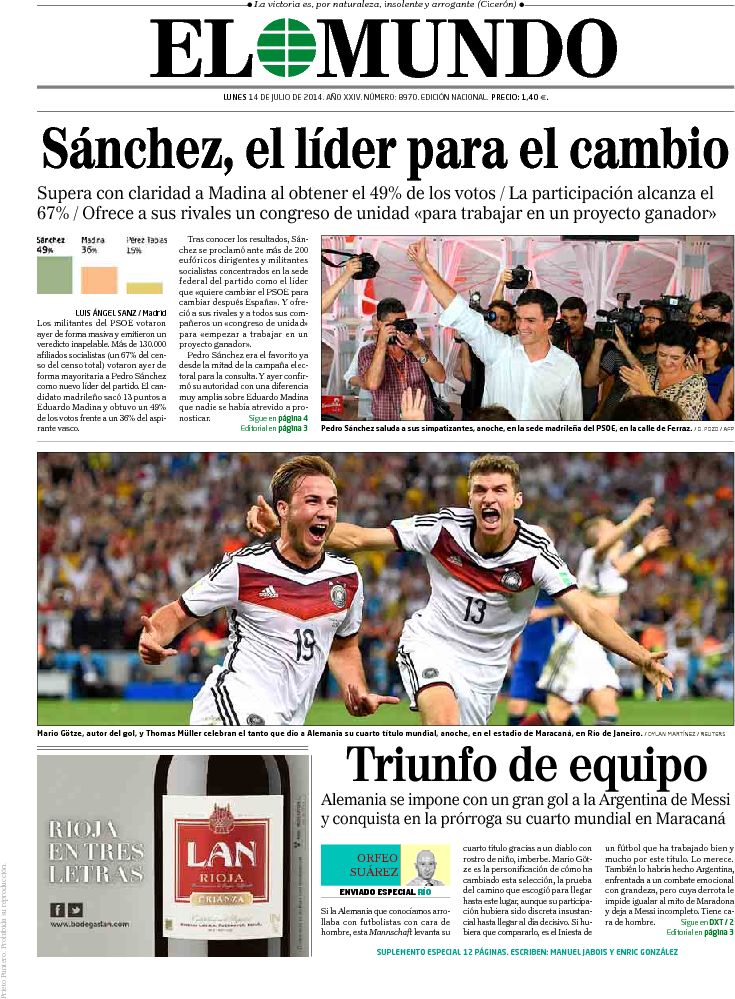 Portadas de los diarios El Mundo, El País, ABC, La Razón, La Vanguardia, El Periódico, Cinco Días, El Economista, Expansión, Marca, As, Mundo Deportivo y Sport.