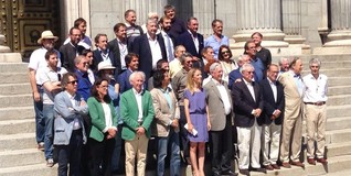 Intelectuales y políticos como Vargas Llosa o José María Fidalgo han leído un manifiesto a las puertas del Congreso.