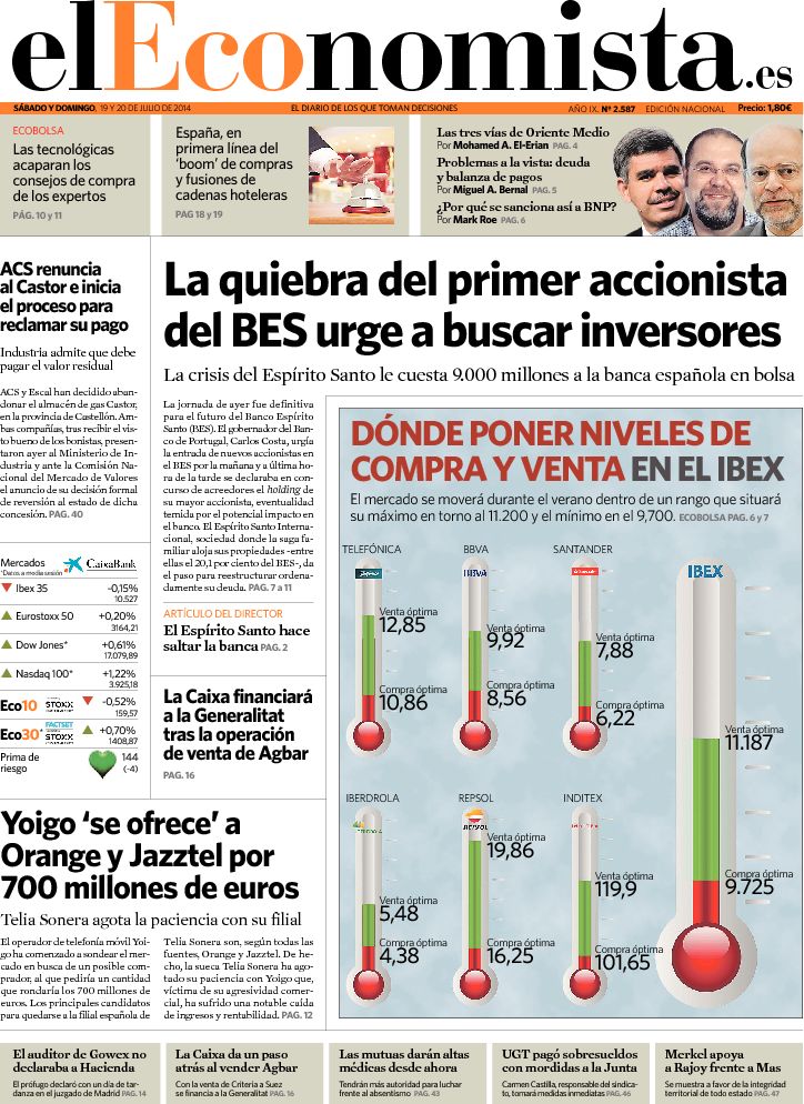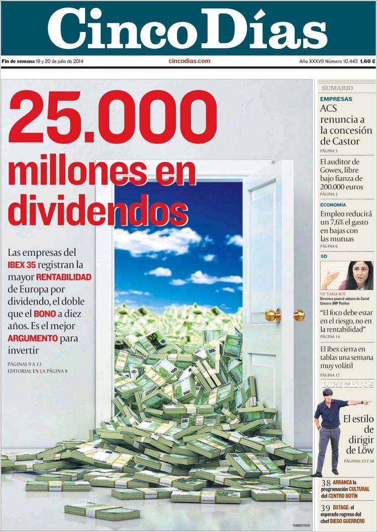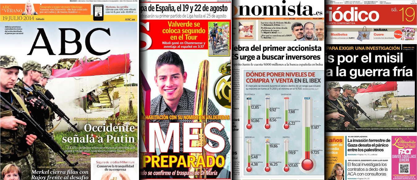 Portadas de los diarios ABC, As, El Periódico, El Economista y La Vanguardia.