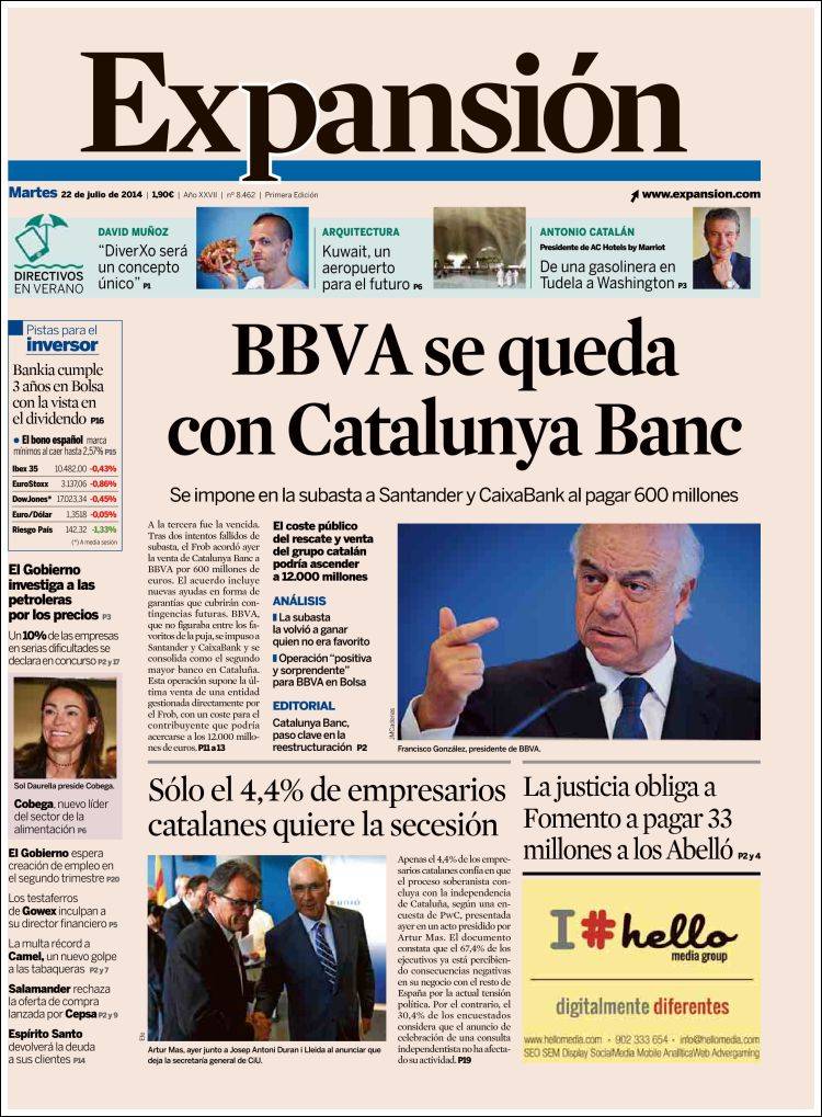 "BBVA paga 1.187 millones por Catalunya Banc"