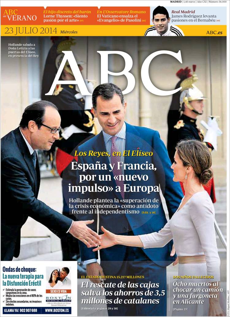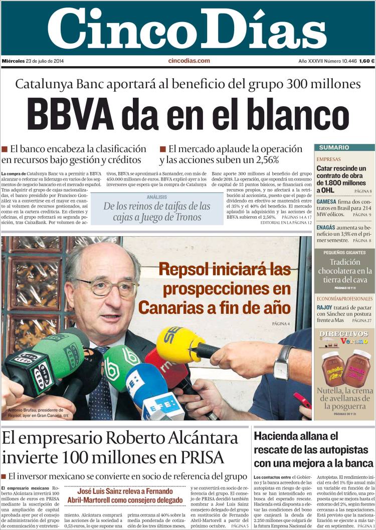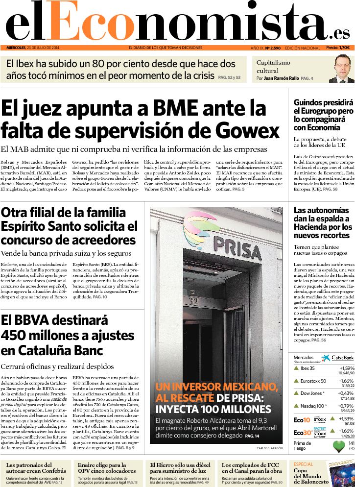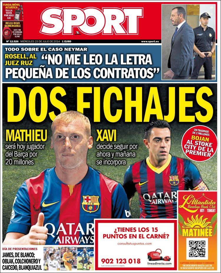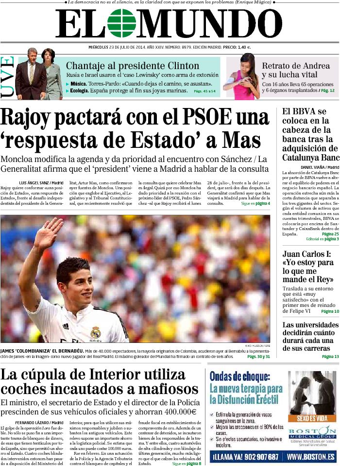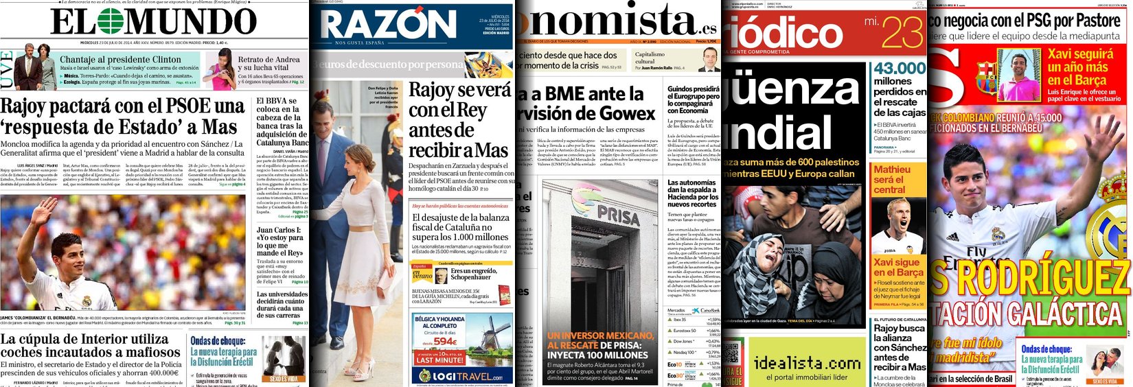 Portadas de los diarios El Mundo, El País, ABC, La Razón, La Vanguardia, El Periódico, Cinco Días, El Economista, Expansión, Marca, As, Mundo Deportivo y Sport.