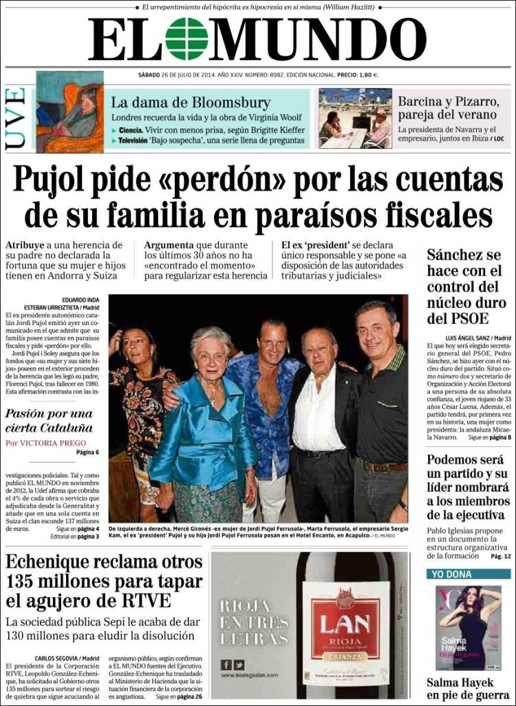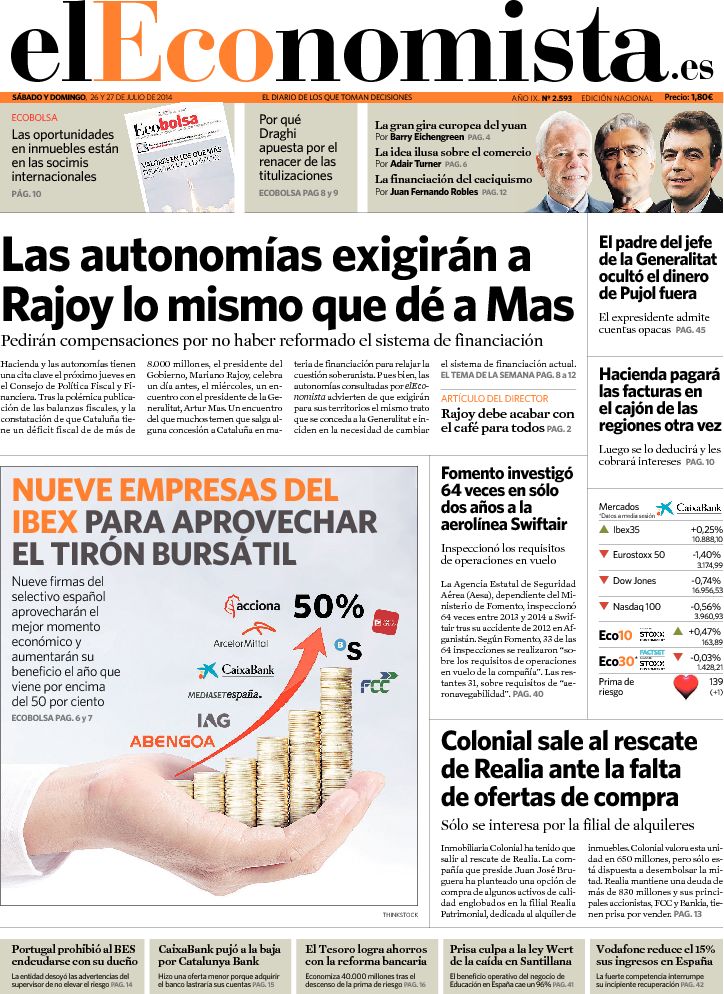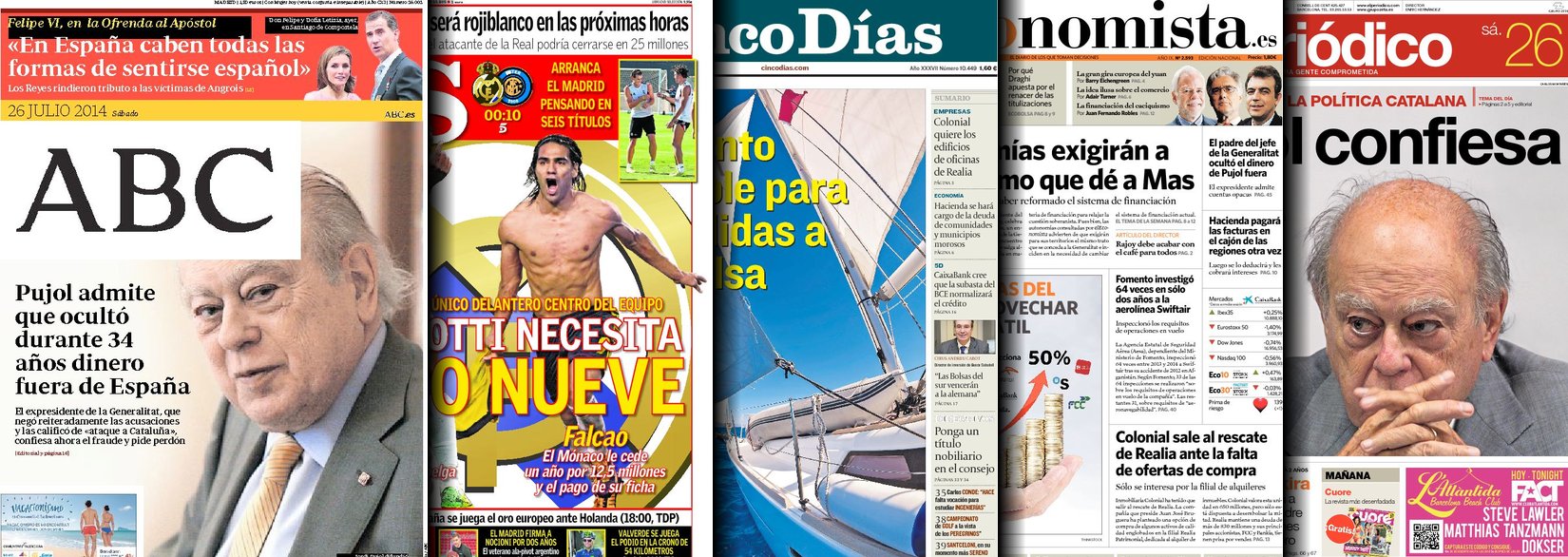 Portadas de los diarios ABC, As, Cinco Días, El Periódico, El Economista y La Vanguardia.