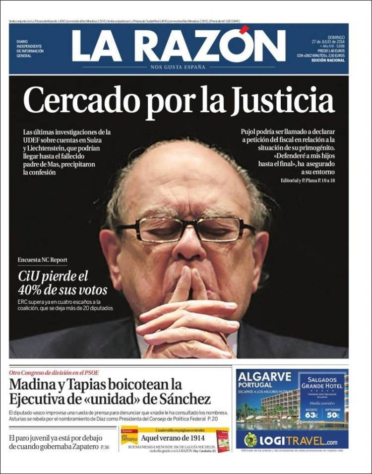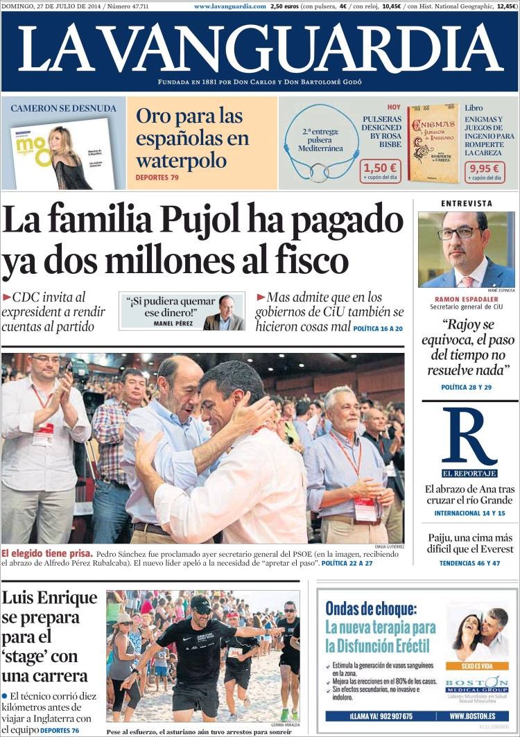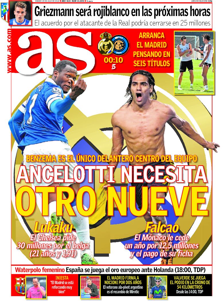 Portadas de los diarios ABC, El Mundo, El País, La Razón, As, El Periódico y La Vanguardia.