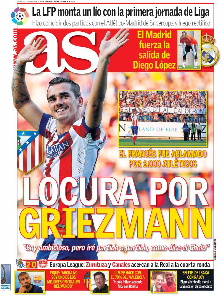 Portadas de los diarios ABC, La Razón, As, El Periódico, El Economista y La Vanguardia.