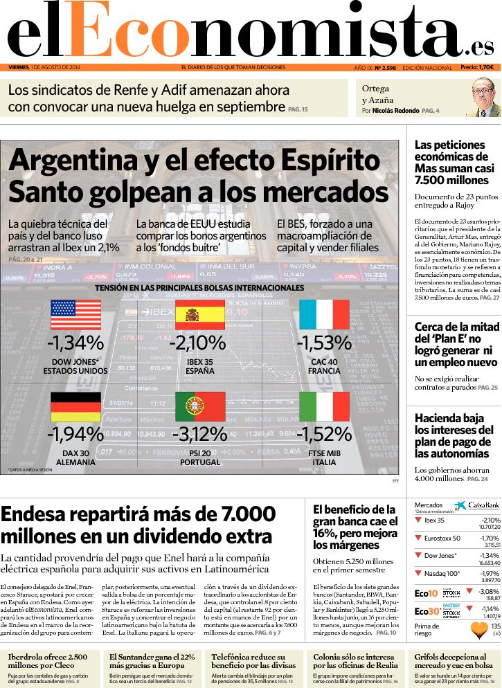"Argentina y el efecto Espírito Santo golpean a los mercados"