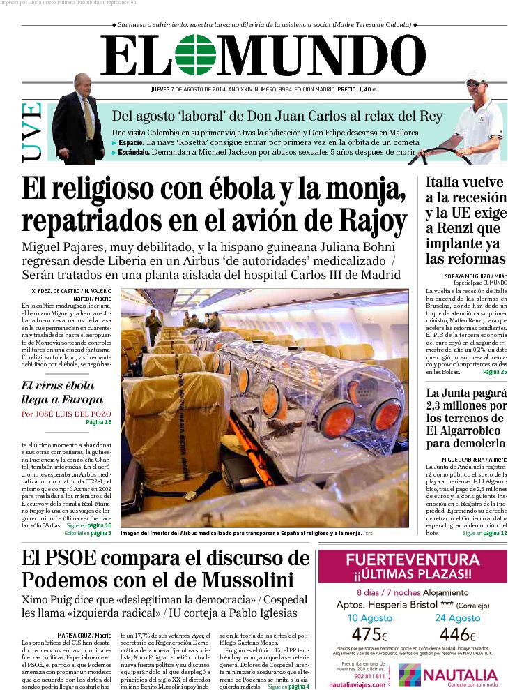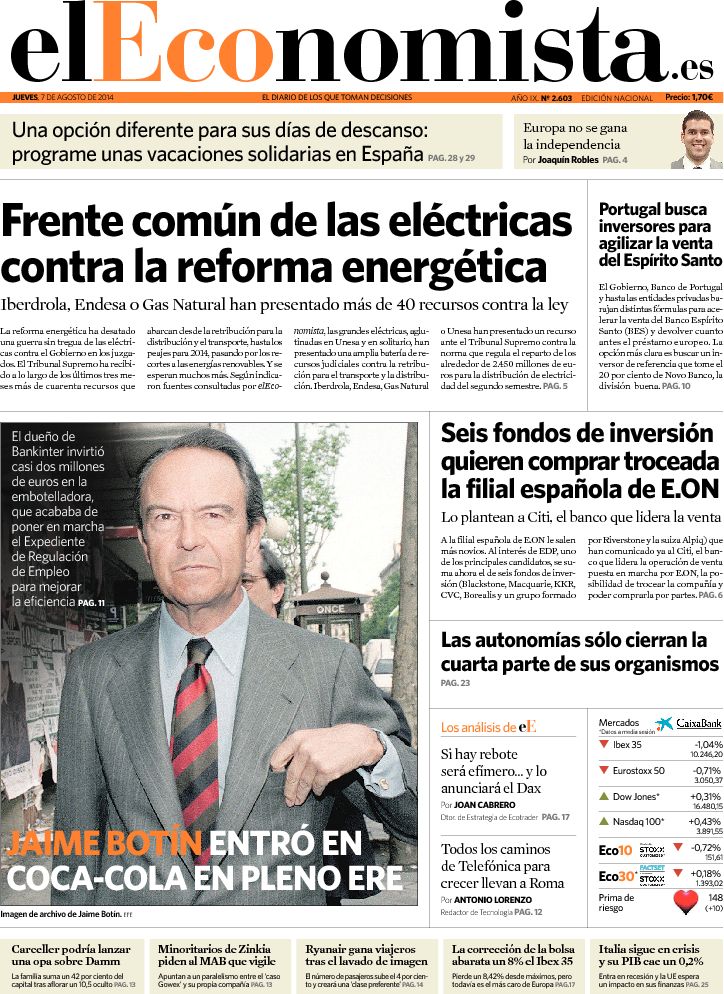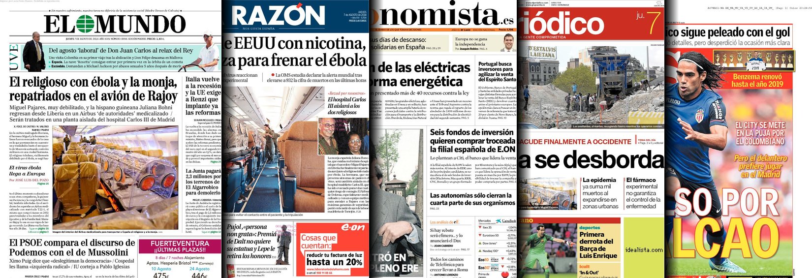 Portadas de los diarios ABC, La Razón, As, El Periódico, El Economista y La Vanguardia.