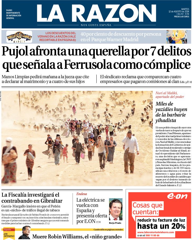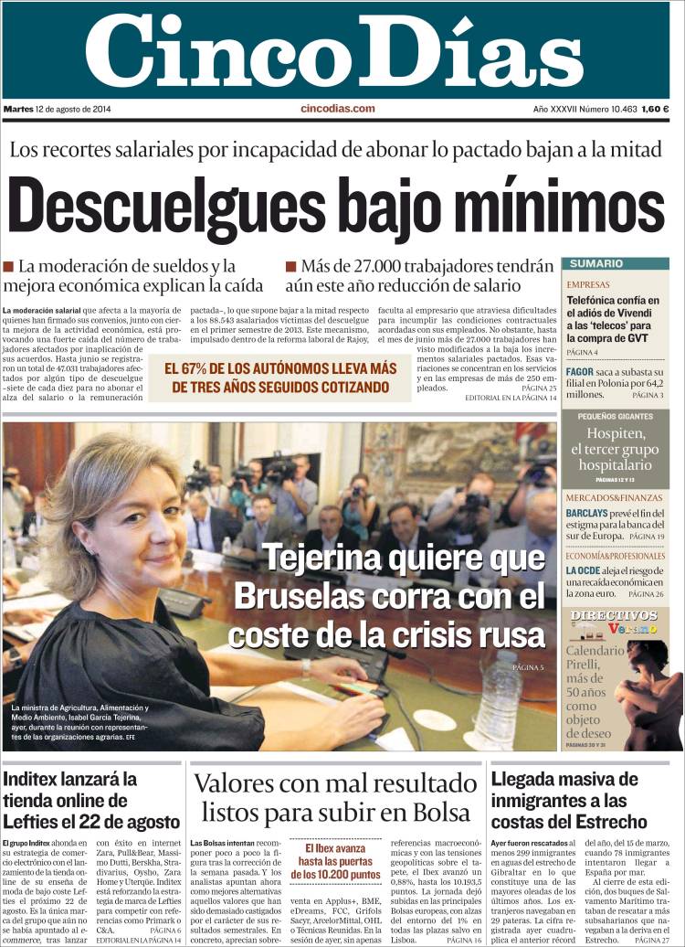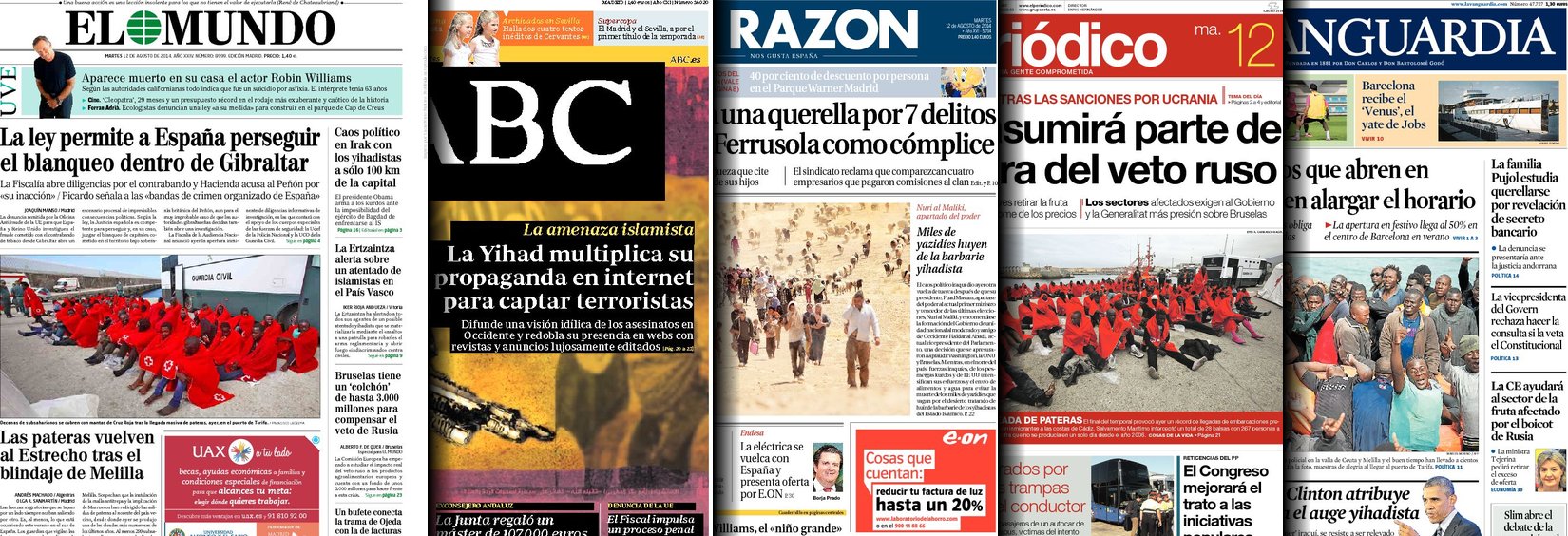 Portadas de los diarios El Mundo, El País, ABC, La Razón, La Vanguardia, El Periódico, Cinco Días, El Economista, Expansión, Marca, As, Mundo Deportivo y Sport.