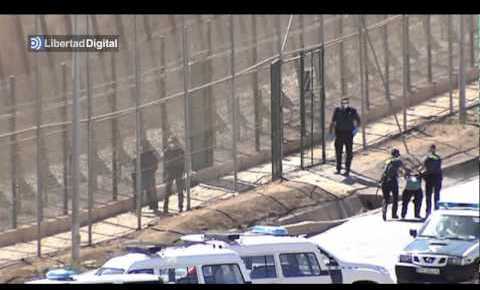La Guardia Civil y los agentes marroquíes ya han descendido a todos los que se habían quedado encaramados a la valla.