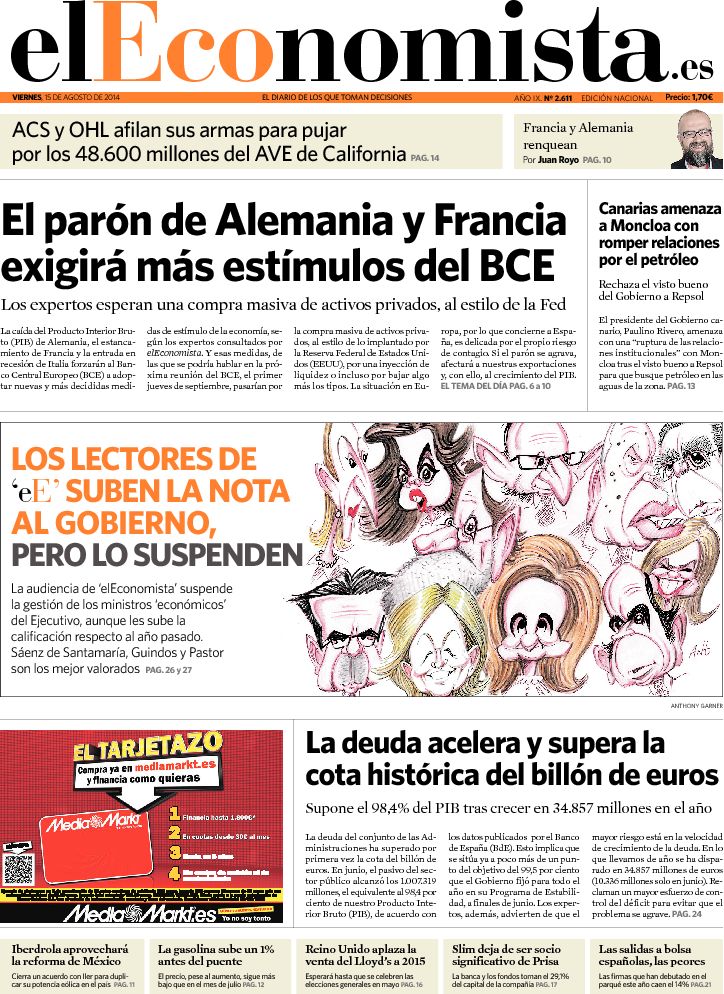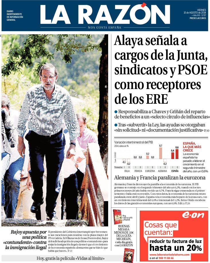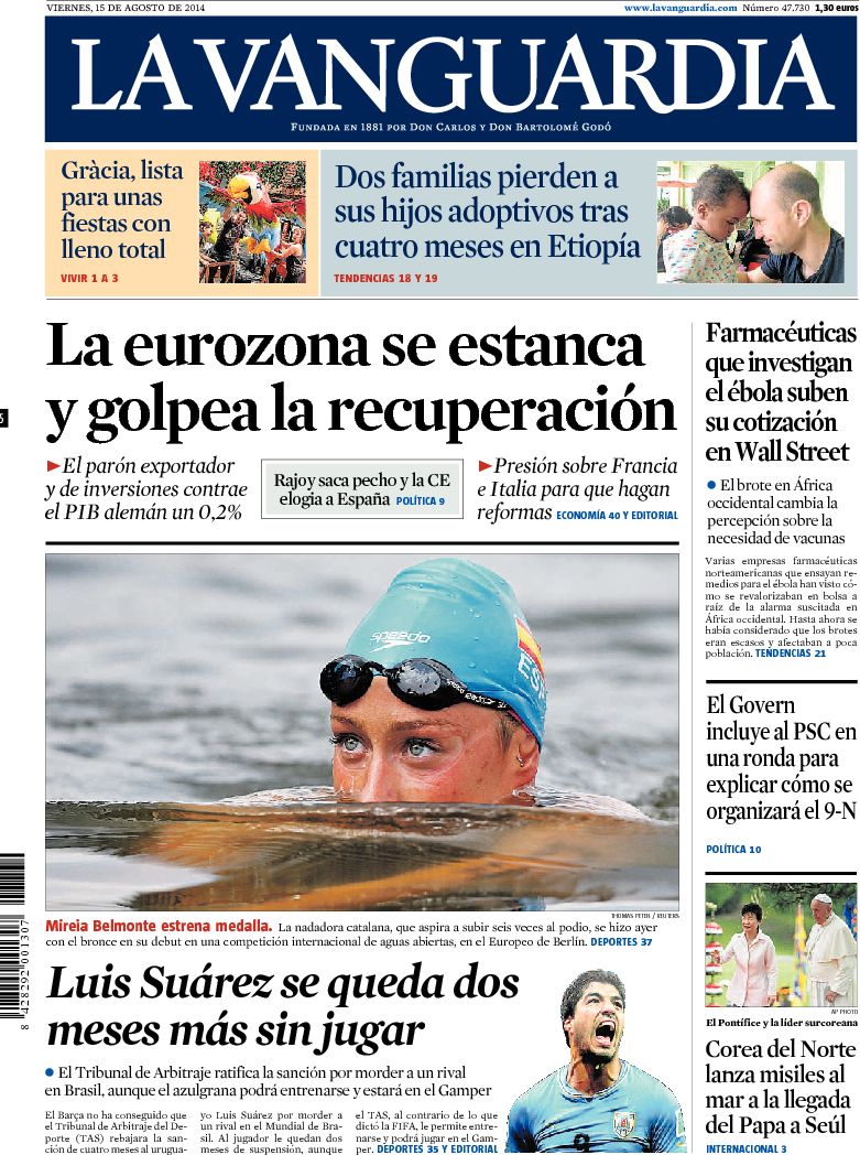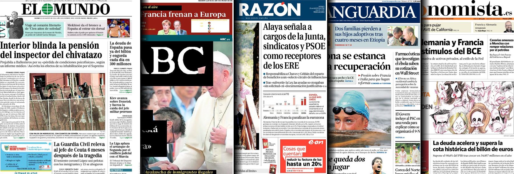 Portadas de los diarios ABC, La Razón, As, El Periódico, El Economista y La Vanguardia.