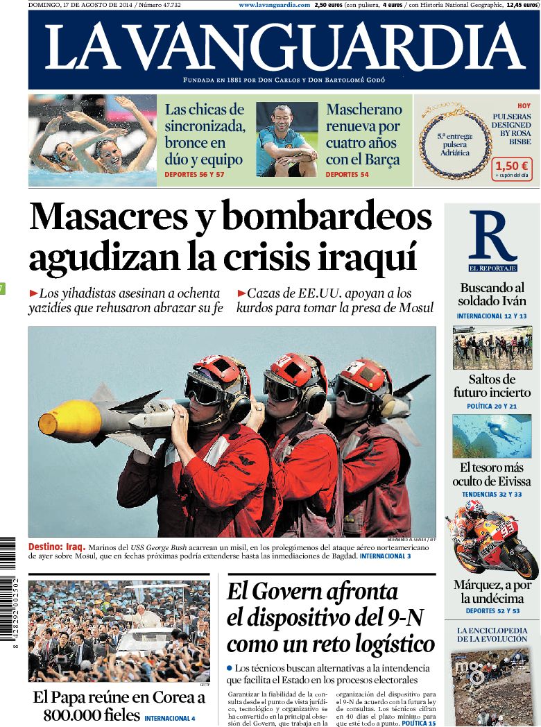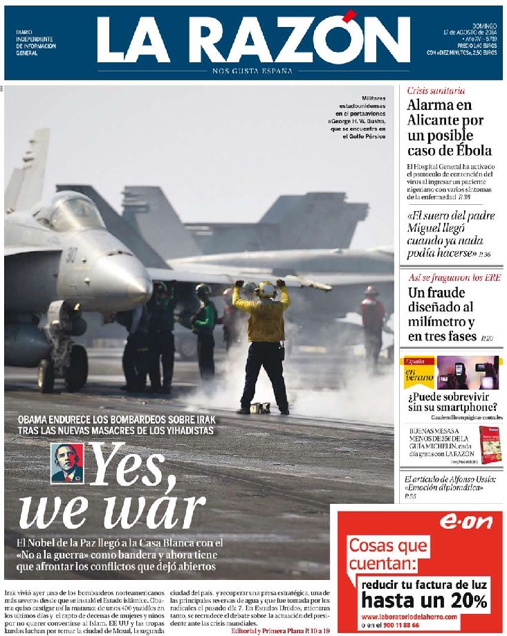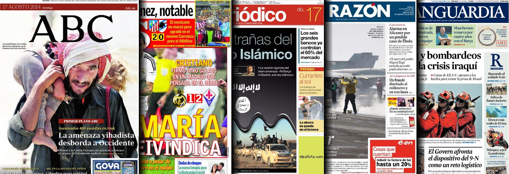 Portadas de los diarios ABC, La Razón, As, El Periódico y La Vanguardia.