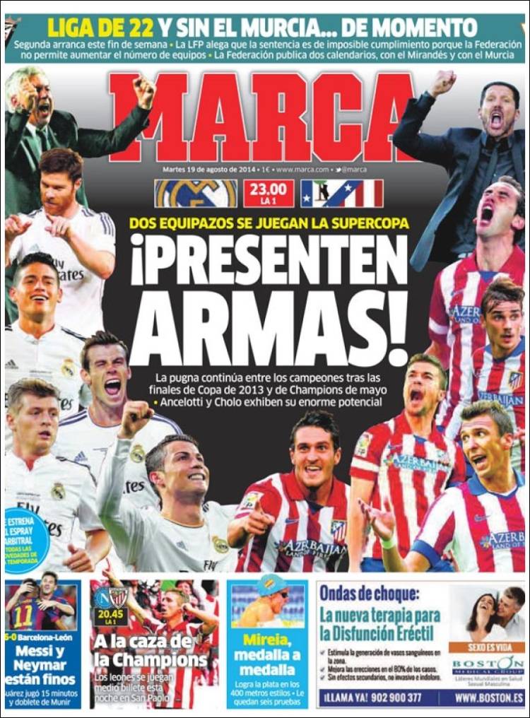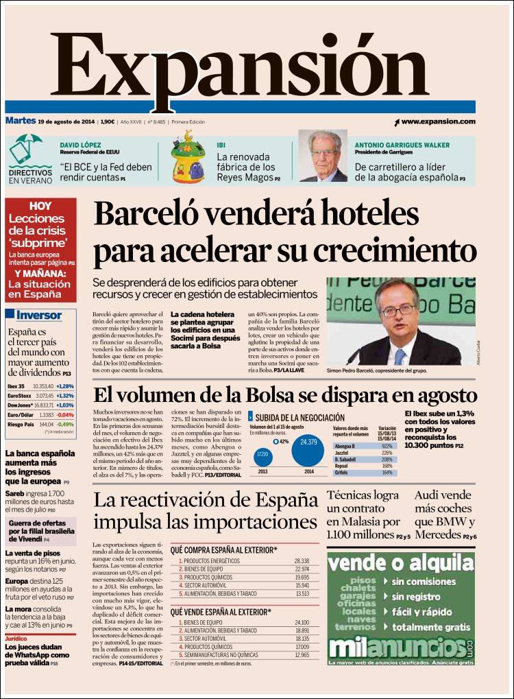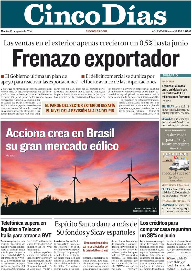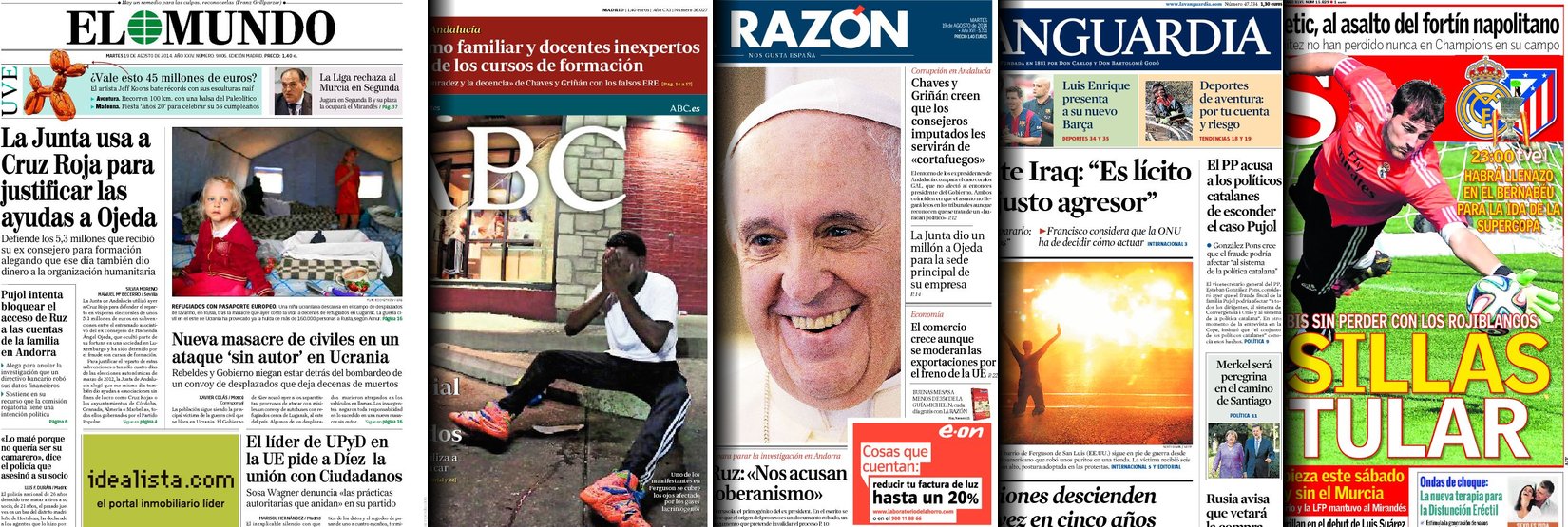 Portadas de los diarios El Mundo, El País, ABC, La Razón, La Vanguardia, El Periódico, Cinco Días, El Economista, Expansión, Marca, As, Mundo Deportivo y Sport.