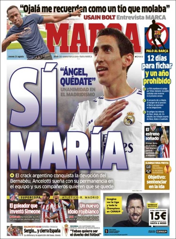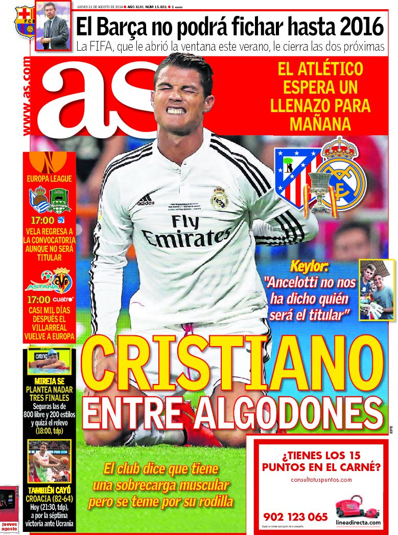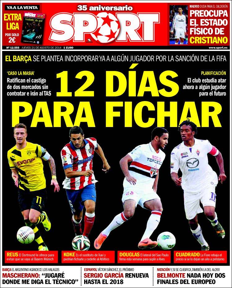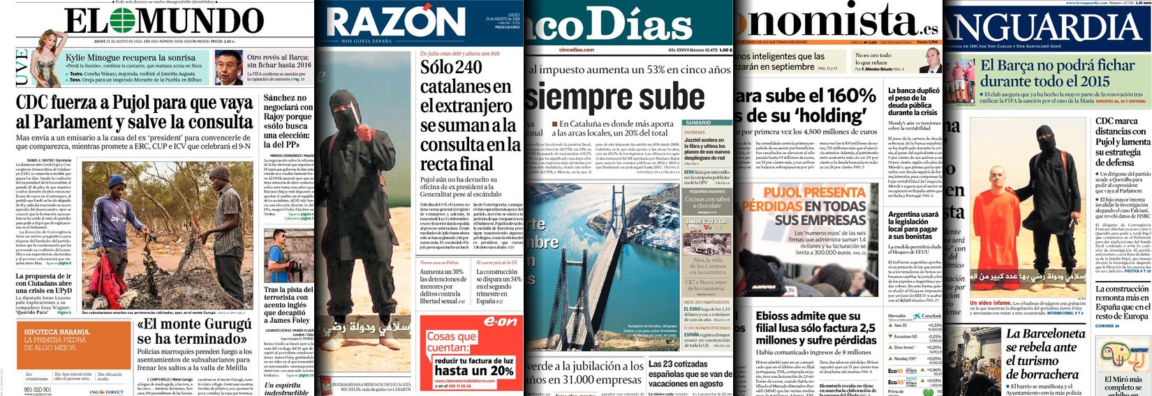 Portadas de los diarios El Mundo, El País, ABC, La Razón, La Vanguardia, El Periódico, Cinco Días, El Economista, Expansión, Marca, As, Mundo Deportivo y Sport.
