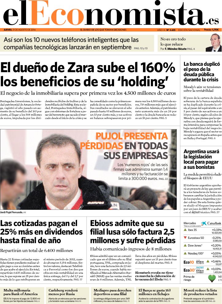 "El dueño de Zara sube el 160% los beneficios de su 'holding' "