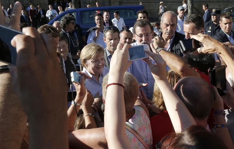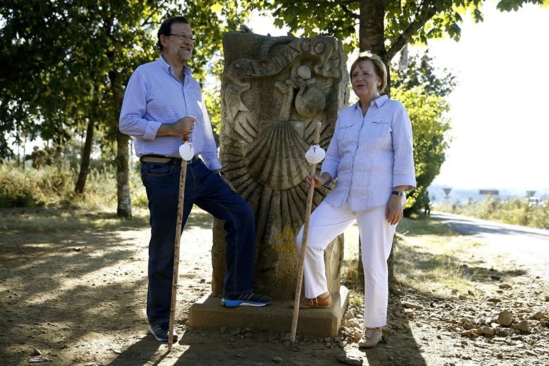 La canciller alemana ha viajado a Santiago de Compostela para reunirse con Mariano Rajoy. En su primer día de visita, ha recorrido seis kilómetros del camino de Santiago con el presidente del Gobierno... y los traductores.
