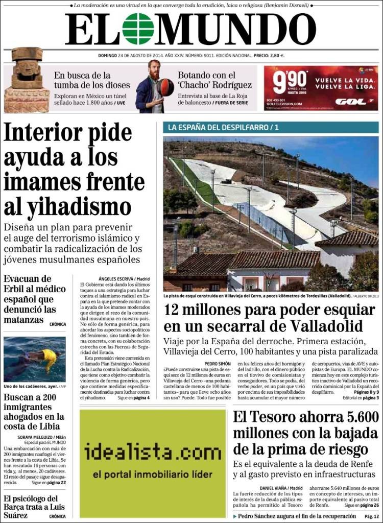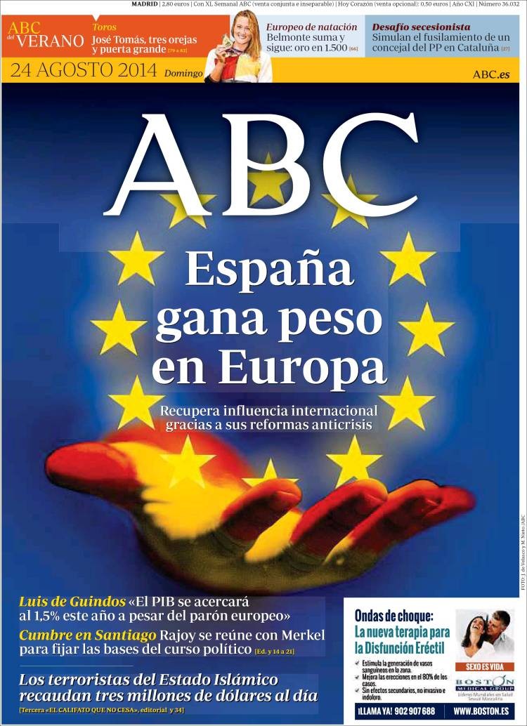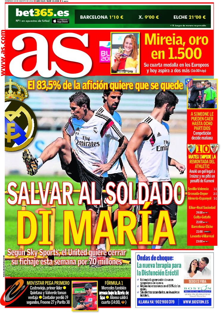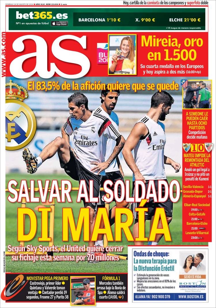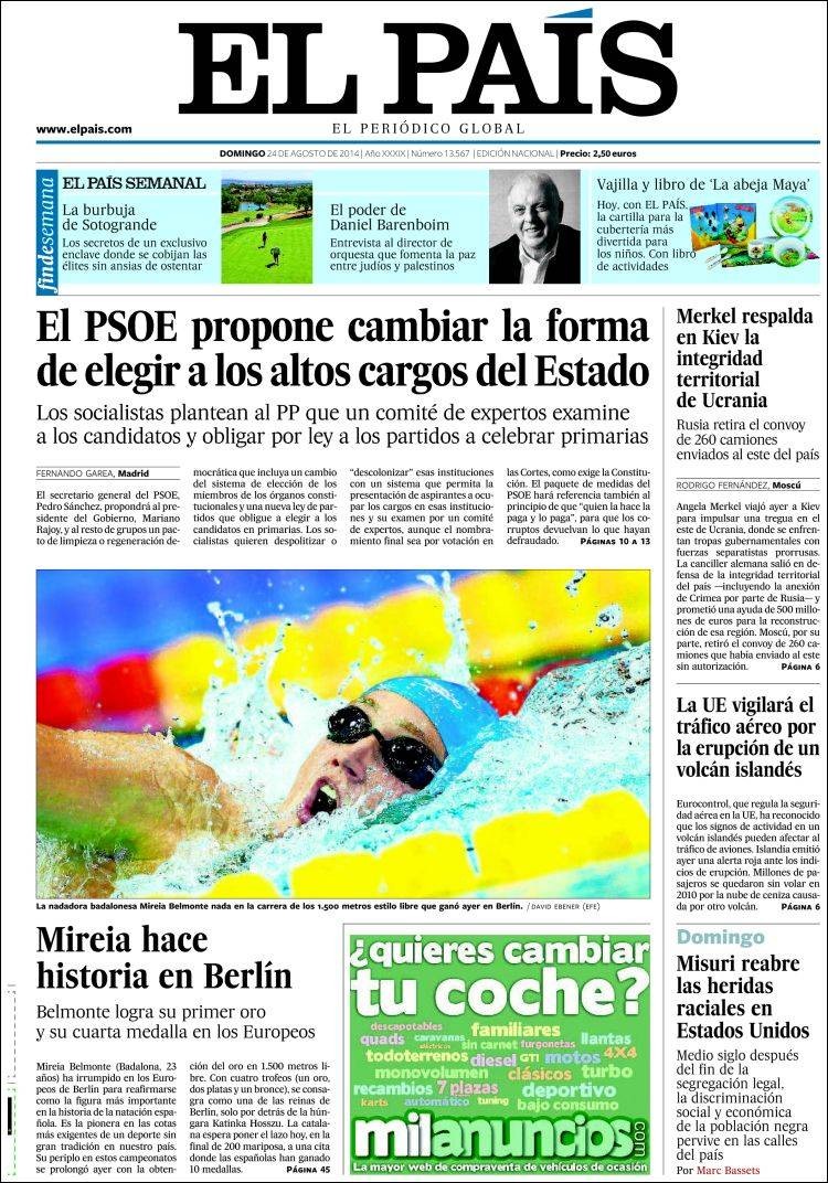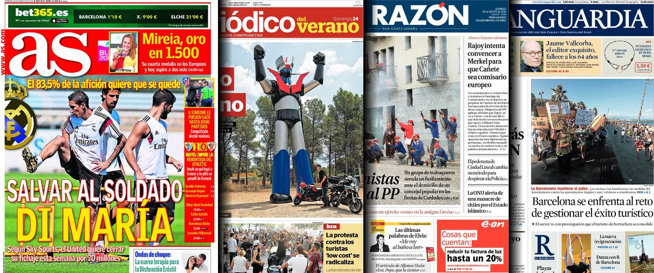 Portadas de los diarios El País, El Mundo, ABC, La Razón, As, El Periódico y La Vanguardia.