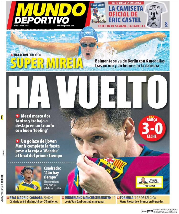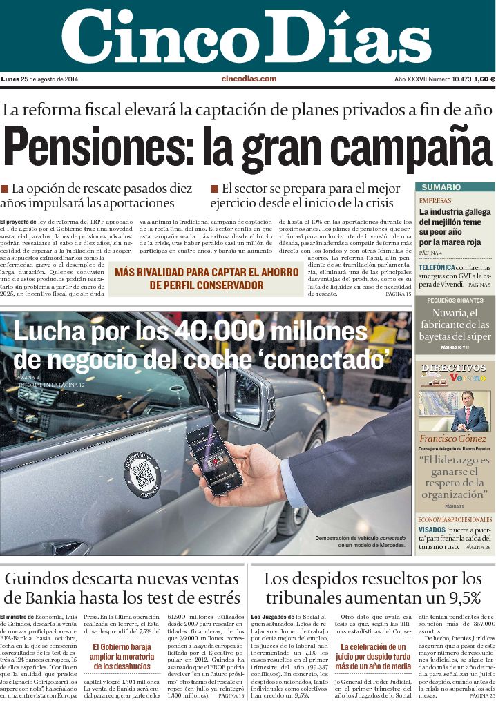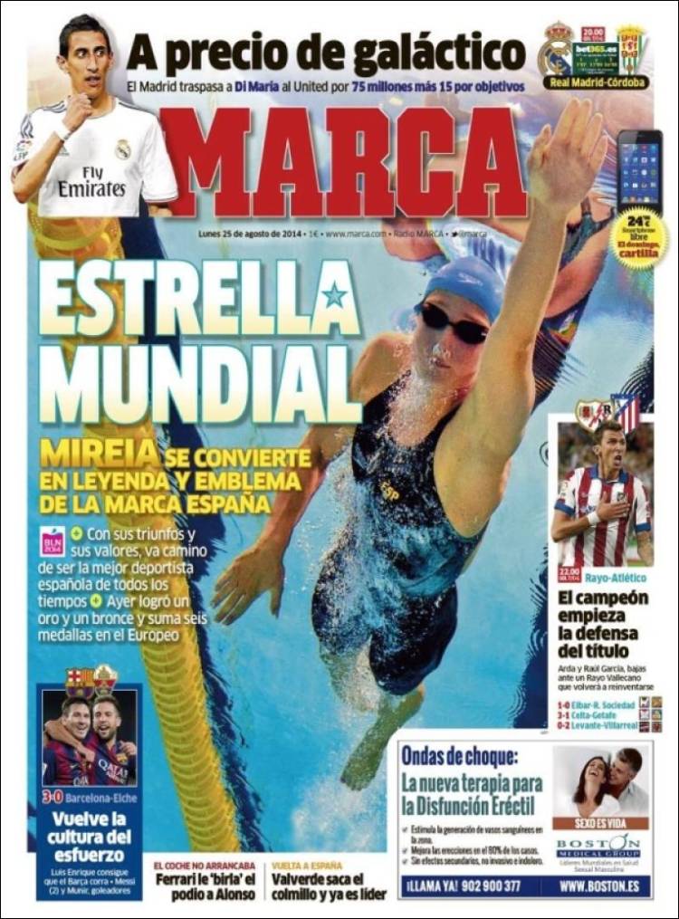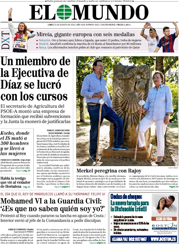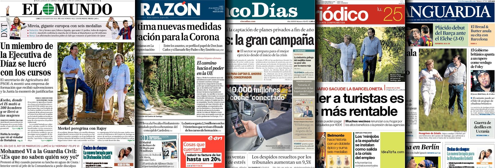 Portadas de los diarios El Mundo, El País, ABC, La Razón, La Vanguardia, El Periódico, Cinco Días, El Economista, Expansión, Marca, As, Mundo Deportivo y Sport.