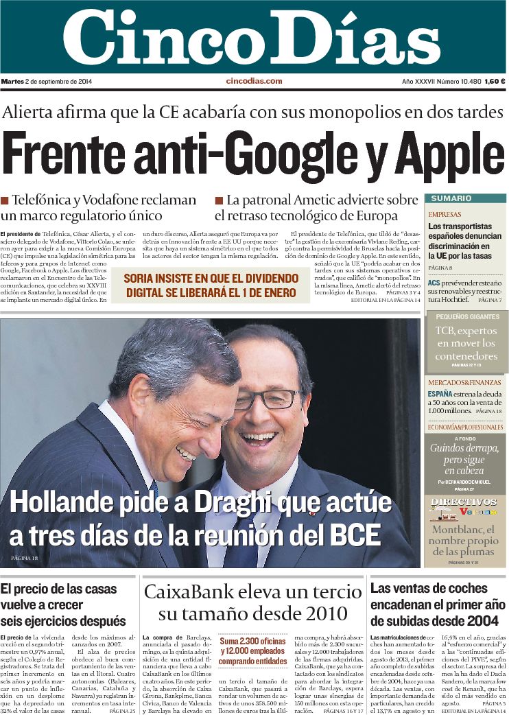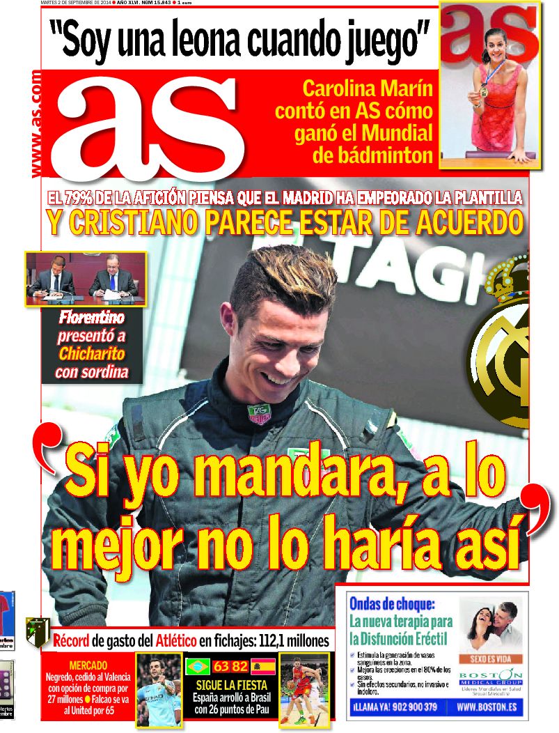 Portadas de los diarios El Mundo, El País, ABC, La Razón, La Vanguardia, El Periódico, Cinco Días, El Economista, Expansión, Marca, As, Mundo Deportivo y Sport.