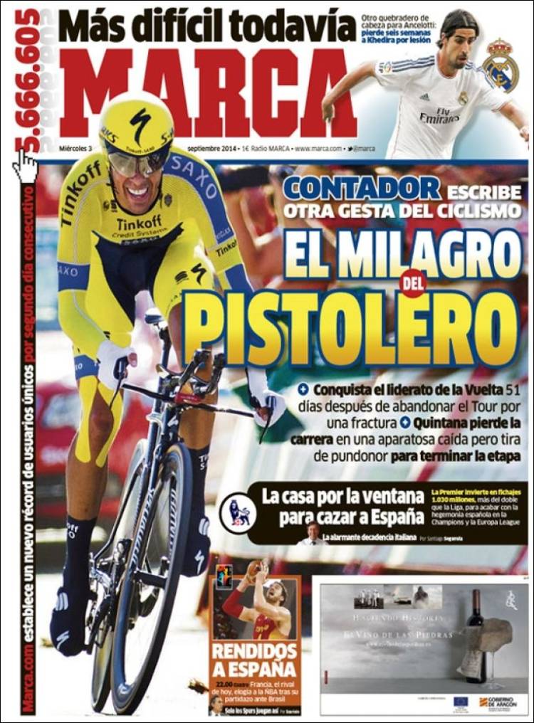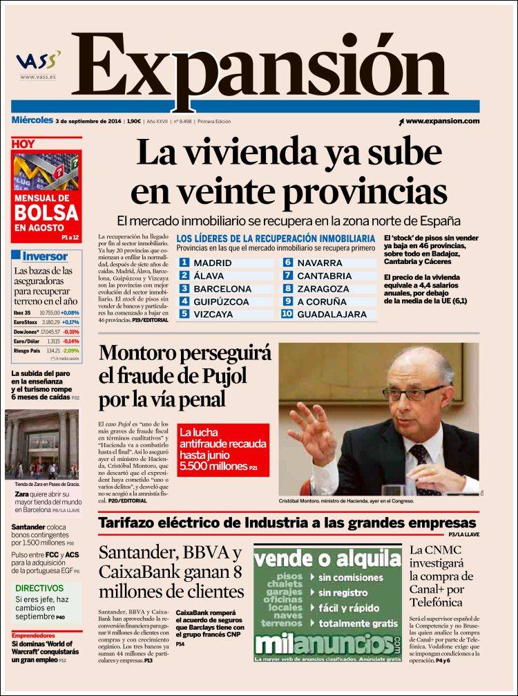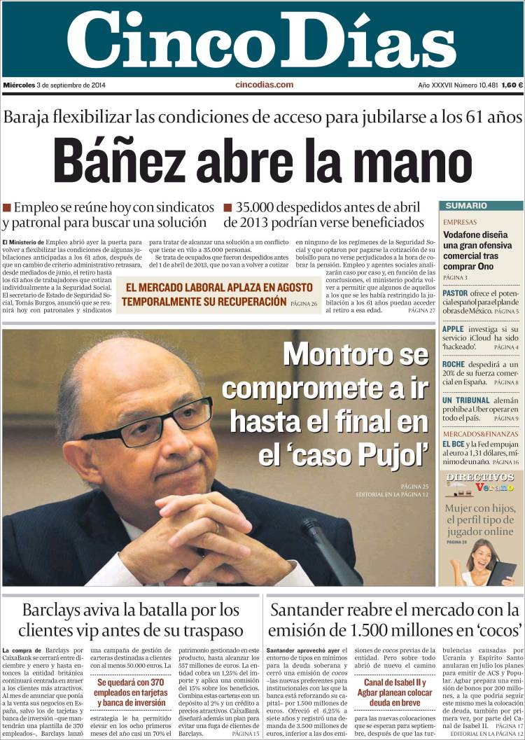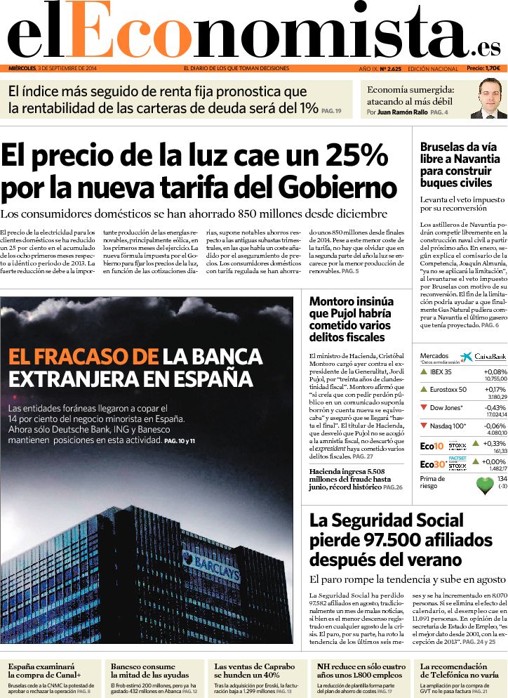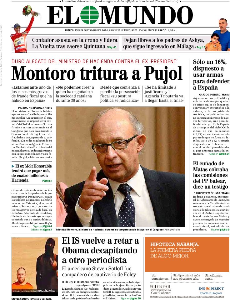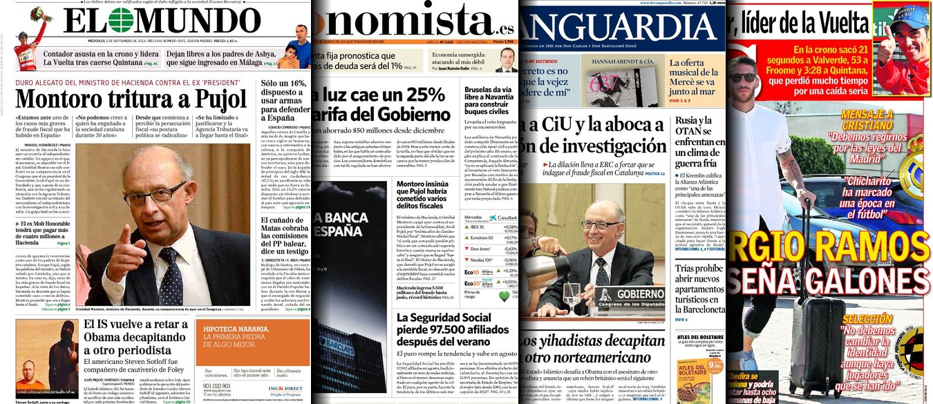 Portadas de los diarios El Mundo, El País, ABC, La Razón, La Vanguardia, El Periódico, Cinco Días, El Economista, Expansión, Marca, As, Mundo Deportivo y Sport.