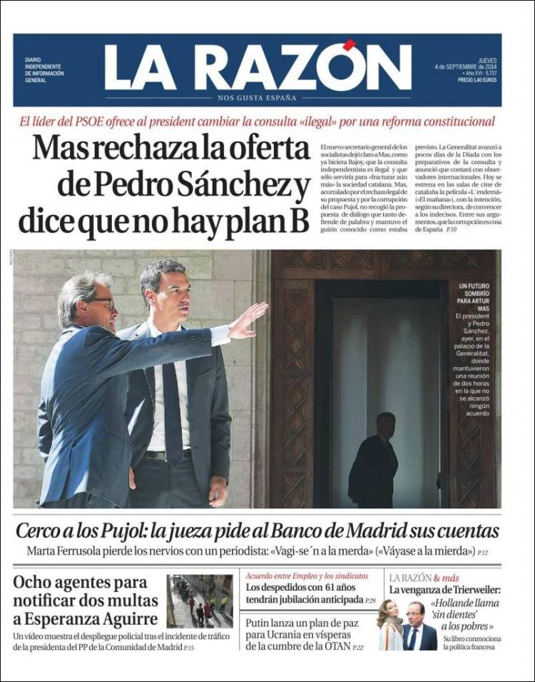 "Mas rechaza la oferta de Pedro Sánchez y dice que no hay plan B"