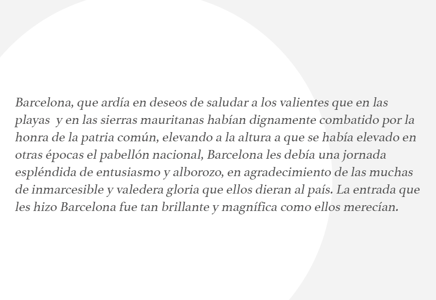 VÍCTOR BALAGUER, Reseña de los festejos celebrados en Barcelona, en los primeros días de mayo de 1860, con motivo del regreso de los voluntarios de Cataluña y las tropas del Ejército de África, 1860.