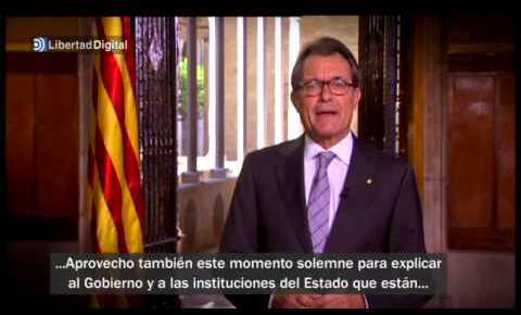TV3 emitió el mensaje institucional grabado horas antes por Artur Mas en el que lanzó amenazas veladas y el "firme compromiso" de convocar la consulta. En un tono admonitorio, afirmó: "Aún estamos a tiempo de escuchar el clamor pacífico y democrático de este pueblo. Silenciar la voz de un pueblo que quiere hablar es un error; negar el voto a quien ve en las urnas la solución y no el problema es un doble error".