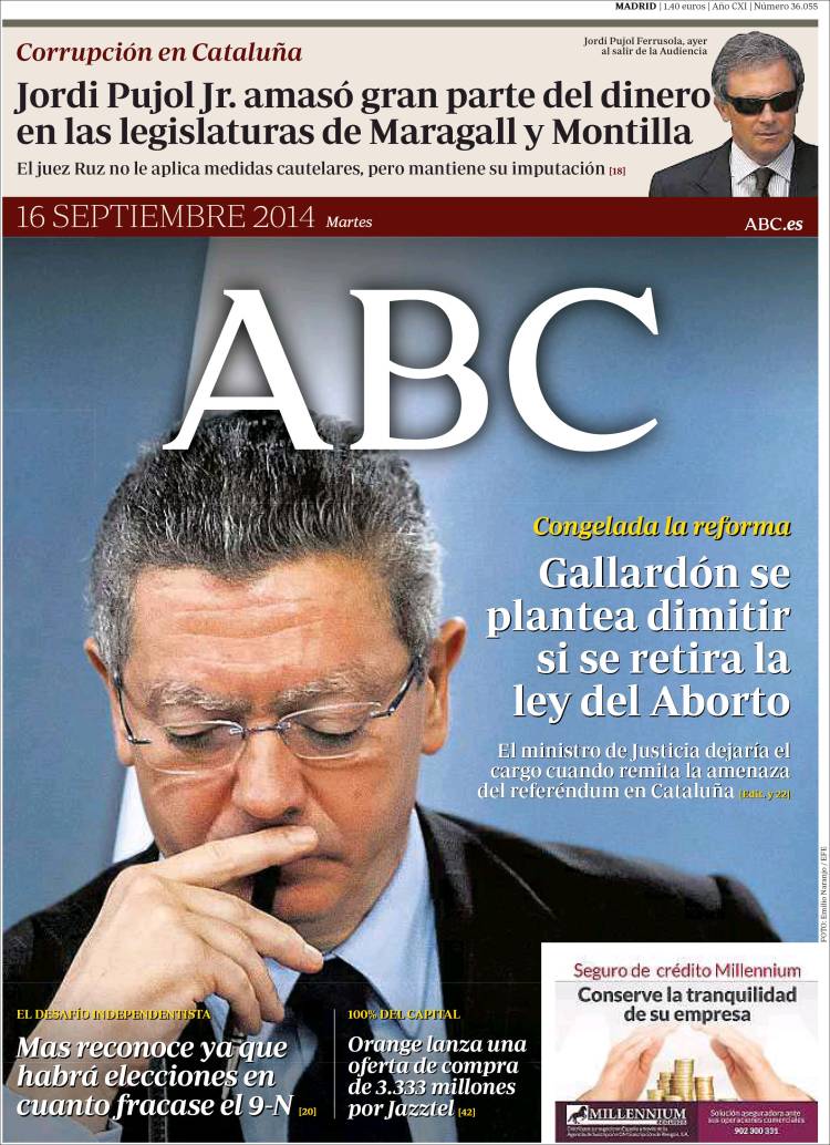 "Gallardón se plantea dimitir si se retira la ley del Aborto"