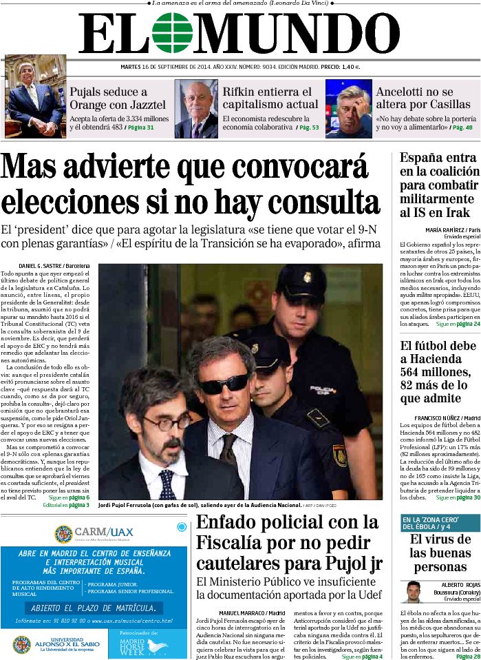 "Mas asume que adelantará las elecciones si no hay consulta"