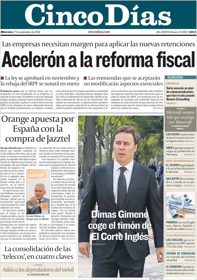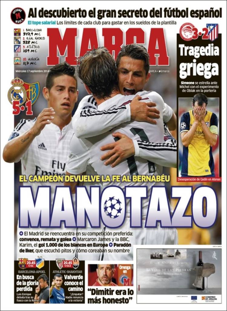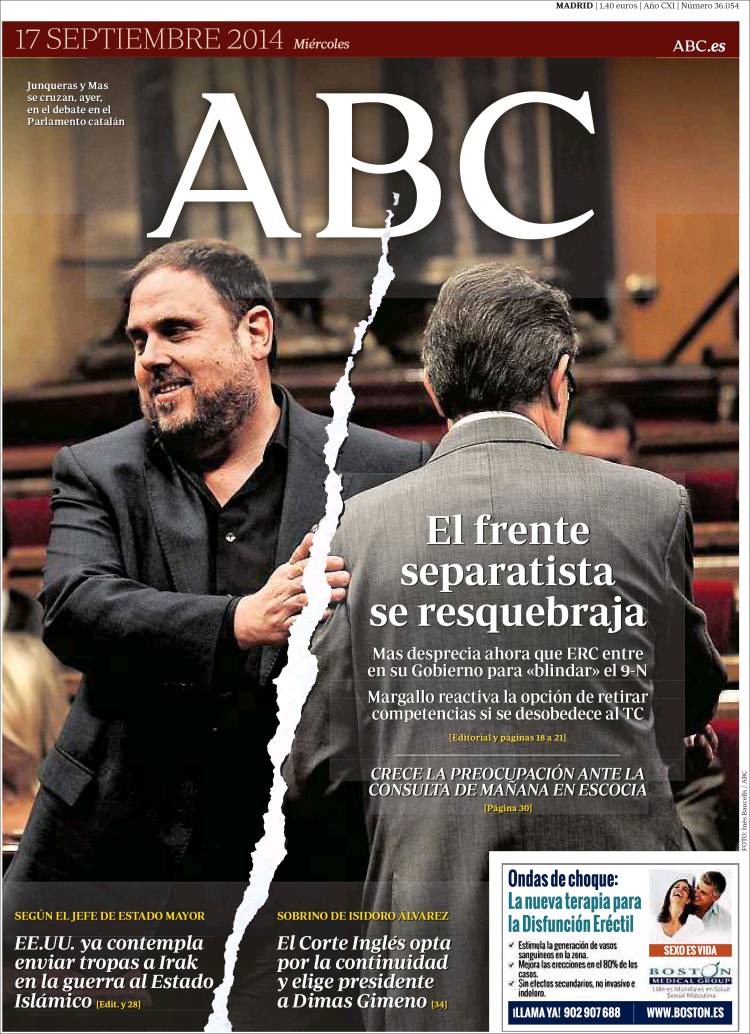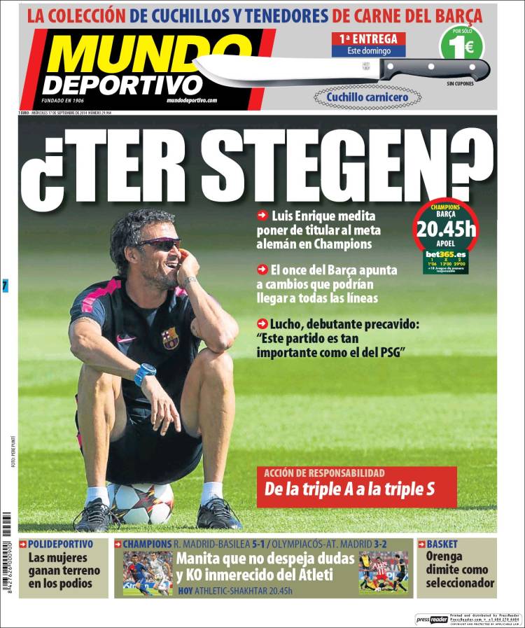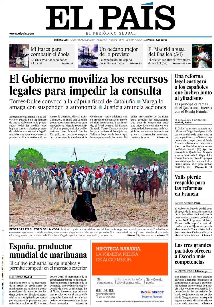 Portadas de los diarios El Mundo, El País, ABC, La Razón, La Vanguardia, El Periódico, Cinco Días, El Economista, Expansión, Marca, As, Mundo Deportivo y Sport.