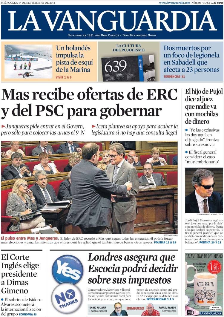 "Mas recibe ofertas de ERC y del PSC para gobernar"